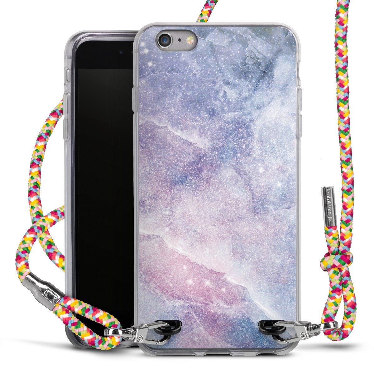 The flexible case is made from a highquality TPU material (thermoplastic Polyurethan). Thanks to its longlasting and break resistant characterisitcs, the case is flexible yet consistent in form and has a great grip and feel. The textile strap made from Polyester gives a chic yet casual accent allowing you to carry your phone like a bag or necklace - a practical gadget perfect for your next adventure. The textile strap is about 1.70 meters long and the length can easily be adjusted through the knots. Our Carry Case is available in Colourful, Mint-Camouflage, Very-Berry, Sahara-Sand and Sparkling-Neon. The ends of the textile strap are covered with metallic end caps to protect them against fraying.