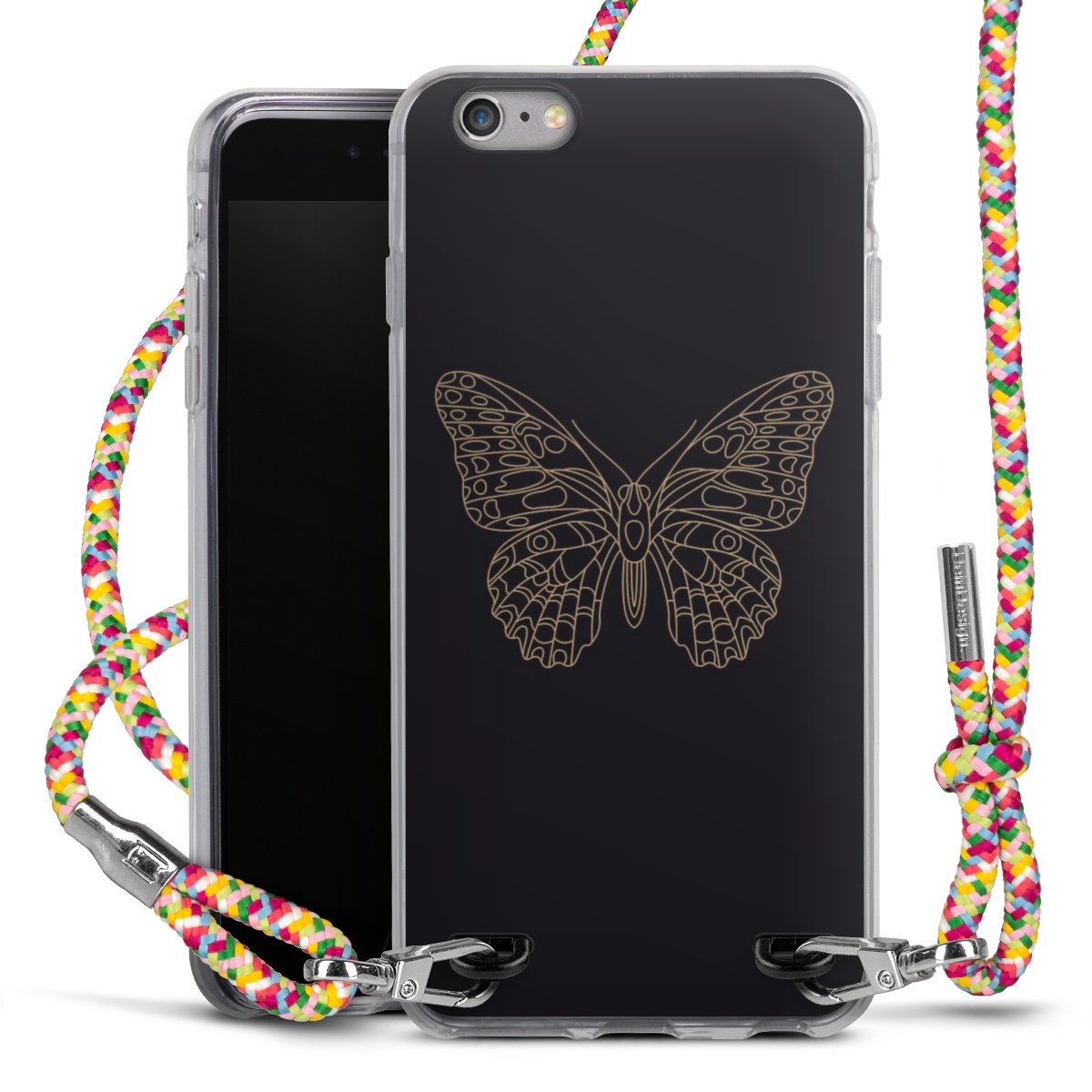 The flexible case is made from a highquality TPU material (thermoplastic Polyurethan). Thanks to its longlasting and break resistant characterisitcs, the case is flexible yet consistent in form and has a great grip and feel. The textile strap made from Polyester gives a chic yet casual accent allowing you to carry your phone like a bag or necklace - a practical gadget perfect for your next adventure. The textile strap is about 1.70 meters long and the length can easily be adjusted through the knots. Our Carry Case is available in Colourful, Mint-Camouflage, Very-Berry, Sahara-Sand and Sparkling-Neon. The ends of the textile strap are covered with metallic end caps to protect them against fraying.