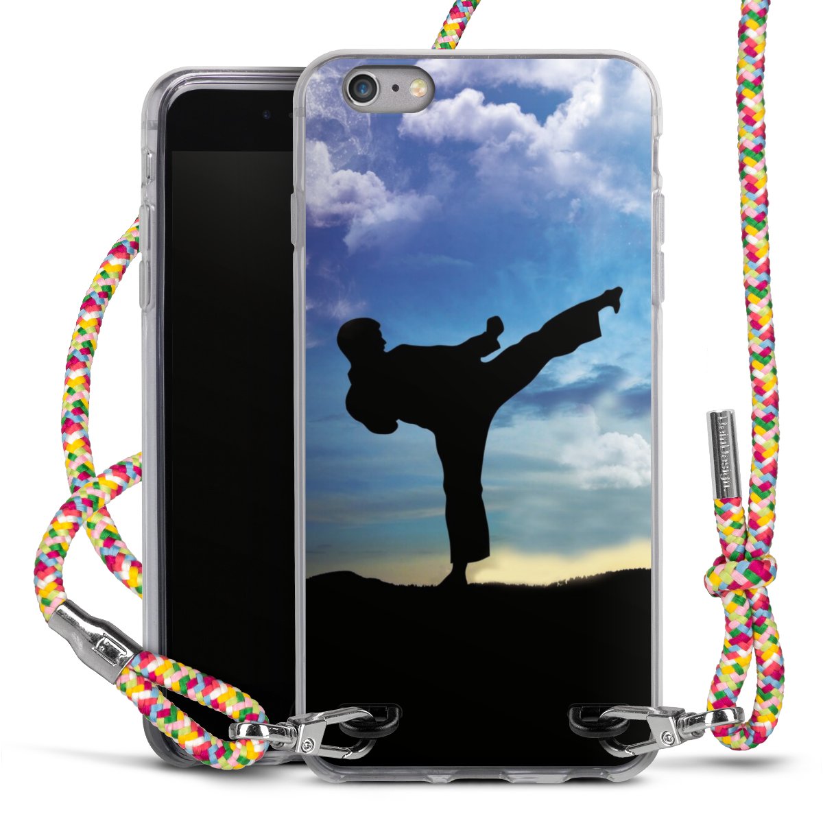 The flexible case is made from a highquality TPU material (thermoplastic Polyurethan). Thanks to its longlasting and break resistant characterisitcs, the case is flexible yet consistent in form and has a great grip and feel. The textile strap made from Polyester gives a chic yet casual accent allowing you to carry your phone like a bag or necklace - a practical gadget perfect for your next adventure. The textile strap is about 1.70 meters long and the length can easily be adjusted through the knots. Our Carry Case is available in Colourful, Mint-Camouflage, Very-Berry, Sahara-Sand and Sparkling-Neon. The ends of the textile strap are covered with metallic end caps to protect them against fraying.