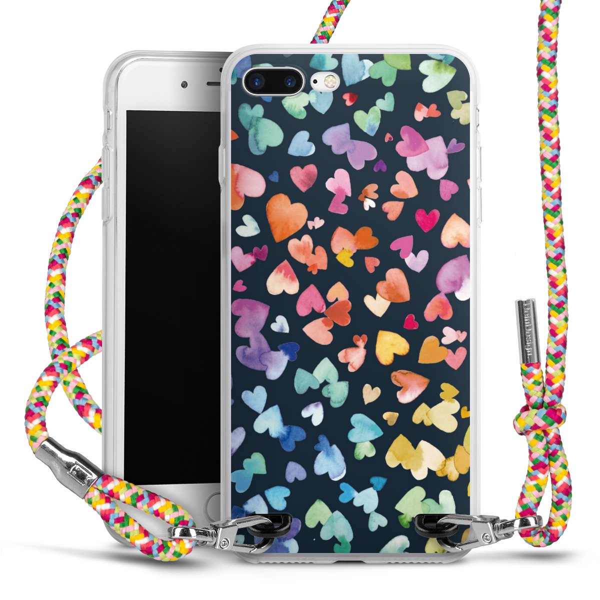 The flexible case is made from a highquality TPU material (thermoplastic Polyurethan). Thanks to its longlasting and break resistant characterisitcs, the case is flexible yet consistent in form and has a great grip and feel. The textile strap made from Polyester gives a chic yet casual accent allowing you to carry your phone like a bag or necklace - a practical gadget perfect for your next adventure. The textile strap is about 1.70 meters long and the length can easily be adjusted through the knots. Our Carry Case is available in Colourful, Mint-Camouflage, Very-Berry, Sahara-Sand and Sparkling-Neon. The ends of the textile strap are covered with metallic end caps to protect them against fraying.