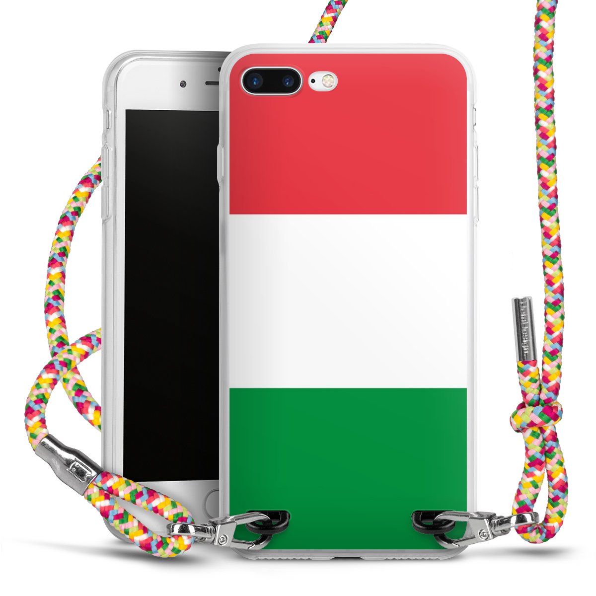 The flexible case is made from a highquality TPU material (thermoplastic Polyurethan). Thanks to its longlasting and break resistant characterisitcs, the case is flexible yet consistent in form and has a great grip and feel. The textile strap made from Polyester gives a chic yet casual accent allowing you to carry your phone like a bag or necklace - a practical gadget perfect for your next adventure. The textile strap is about 1.70 meters long and the length can easily be adjusted through the knots. Our Carry Case is available in Colourful, Mint-Camouflage, Very-Berry, Sahara-Sand and Sparkling-Neon. The ends of the textile strap are covered with metallic end caps to protect them against fraying.