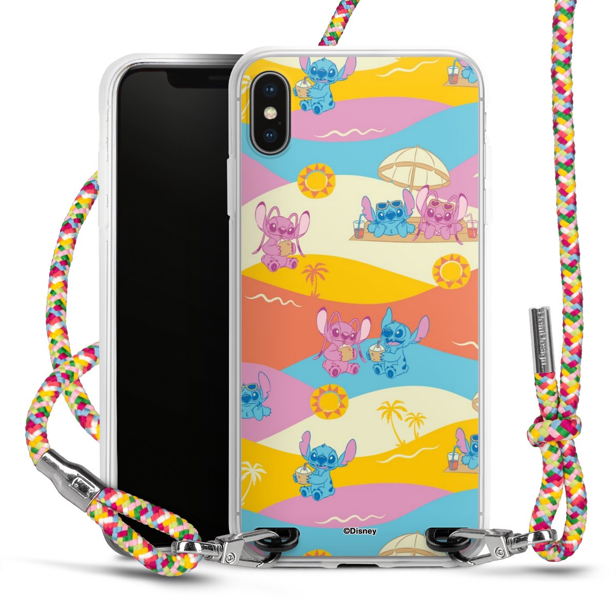 The flexible case is made from a highquality TPU material (thermoplastic Polyurethan). Thanks to its longlasting and break resistant characterisitcs, the case is flexible yet consistent in form and has a great grip and feel. The textile strap made from Polyester gives a chic yet casual accent allowing you to carry your phone like a bag or necklace - a practical gadget perfect for your next adventure. The textile strap is about 1.70 meters long and the length can easily be adjusted through the knots. Our Carry Case is available in Colourful, Mint-Camouflage, Very-Berry, Sahara-Sand and Sparkling-Neon. The ends of the textile strap are covered with metallic end caps to protect them against fraying.