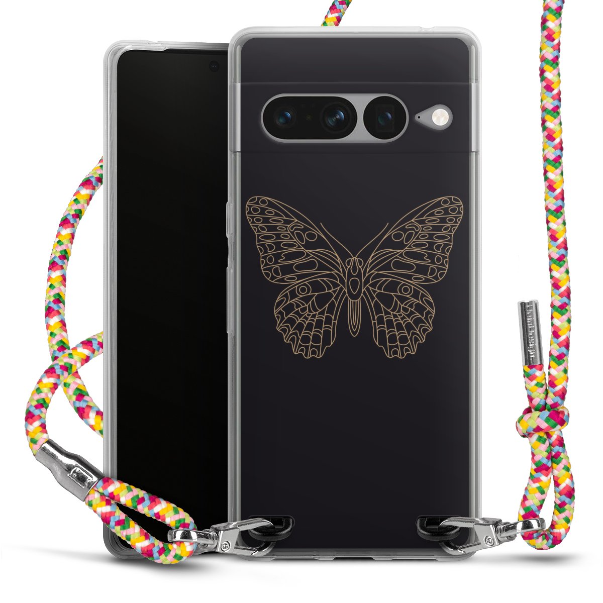 The flexible case is made from a highquality TPU material (thermoplastic Polyurethan). Thanks to its longlasting and break resistant characterisitcs, the case is flexible yet consistent in form and has a great grip and feel. The textile strap made from Polyester gives a chic yet casual accent allowing you to carry your phone like a bag or necklace - a practical gadget perfect for your next adventure. The textile strap is about 1.70 meters long and the length can easily be adjusted through the knots. Our Carry Case is available in Colourful, Mint-Camouflage, Very-Berry, Sahara-Sand and Sparkling-Neon. The ends of the textile strap are covered with metallic end caps to protect them against fraying.