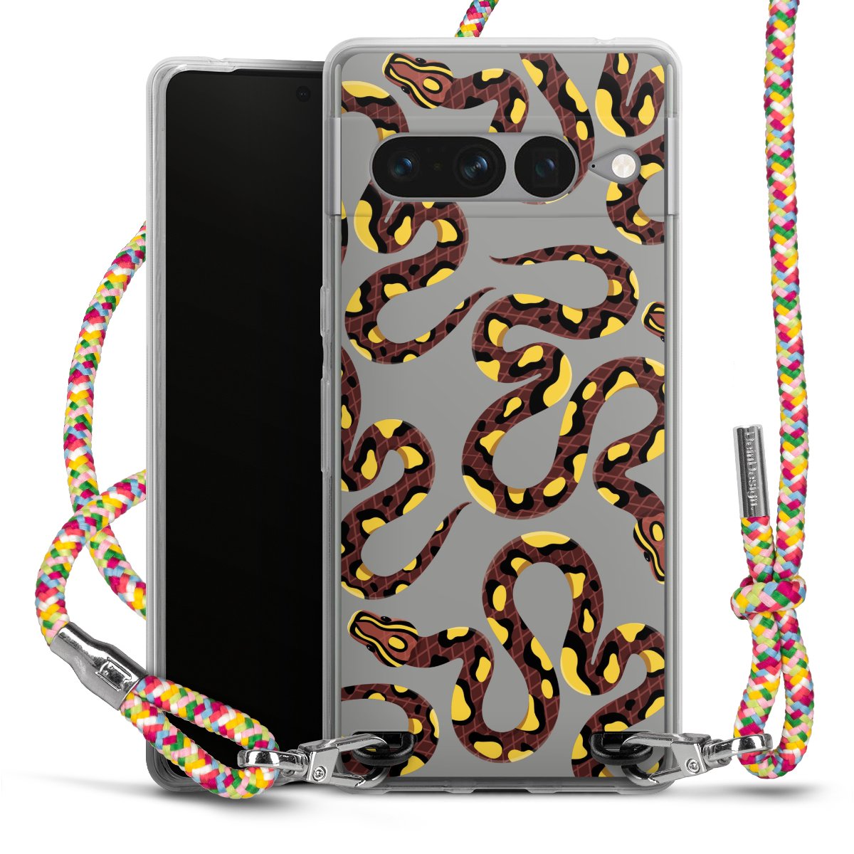 The flexible case is made from a highquality TPU material (thermoplastic Polyurethan). Thanks to its longlasting and break resistant characterisitcs, the case is flexible yet consistent in form and has a great grip and feel. The textile strap made from Polyester gives a chic yet casual accent allowing you to carry your phone like a bag or necklace - a practical gadget perfect for your next adventure. The textile strap is about 1.70 meters long and the length can easily be adjusted through the knots. Our Carry Case is available in Colourful, Mint-Camouflage, Very-Berry, Sahara-Sand and Sparkling-Neon. The ends of the textile strap are covered with metallic end caps to protect them against fraying.