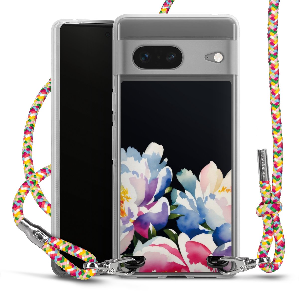 The flexible case is made from a highquality TPU material (thermoplastic Polyurethan). Thanks to its longlasting and break resistant characterisitcs, the case is flexible yet consistent in form and has a great grip and feel. The textile strap made from Polyester gives a chic yet casual accent allowing you to carry your phone like a bag or necklace - a practical gadget perfect for your next adventure. The textile strap is about 1.70 meters long and the length can easily be adjusted through the knots. Our Carry Case is available in Colourful, Mint-Camouflage, Very-Berry, Sahara-Sand and Sparkling-Neon. The ends of the textile strap are covered with metallic end caps to protect them against fraying.