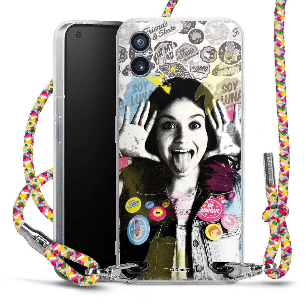 The flexible case is made from a highquality TPU material (thermoplastic Polyurethan). Thanks to its longlasting and break resistant characterisitcs, the case is flexible yet consistent in form and has a great grip and feel. The textile strap made from Polyester gives a chic yet casual accent allowing you to carry your phone like a bag or necklace - a practical gadget perfect for your next adventure. The textile strap is about 1.70 meters long and the length can easily be adjusted through the knots. Our Carry Case is available in Colourful, Mint-Camouflage, Very-Berry, Sahara-Sand and Sparkling-Neon. The ends of the textile strap are covered with metallic end caps to protect them against fraying.