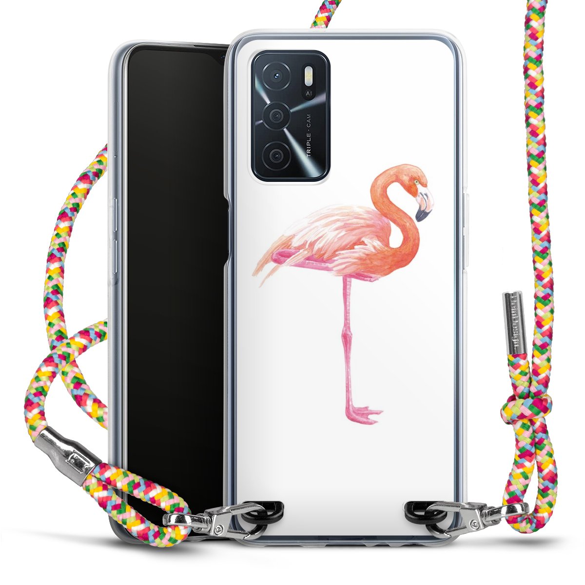 The flexible case is made from a highquality TPU material (thermoplastic Polyurethan). Thanks to its longlasting and break resistant characterisitcs, the case is flexible yet consistent in form and has a great grip and feel. The textile strap made from Polyester gives a chic yet casual accent allowing you to carry your phone like a bag or necklace - a practical gadget perfect for your next adventure. The textile strap is about 1.70 meters long and the length can easily be adjusted through the knots. Our Carry Case is available in Colourful, Mint-Camouflage, Very-Berry, Sahara-Sand and Sparkling-Neon. The ends of the textile strap are covered with metallic end caps to protect them against fraying.