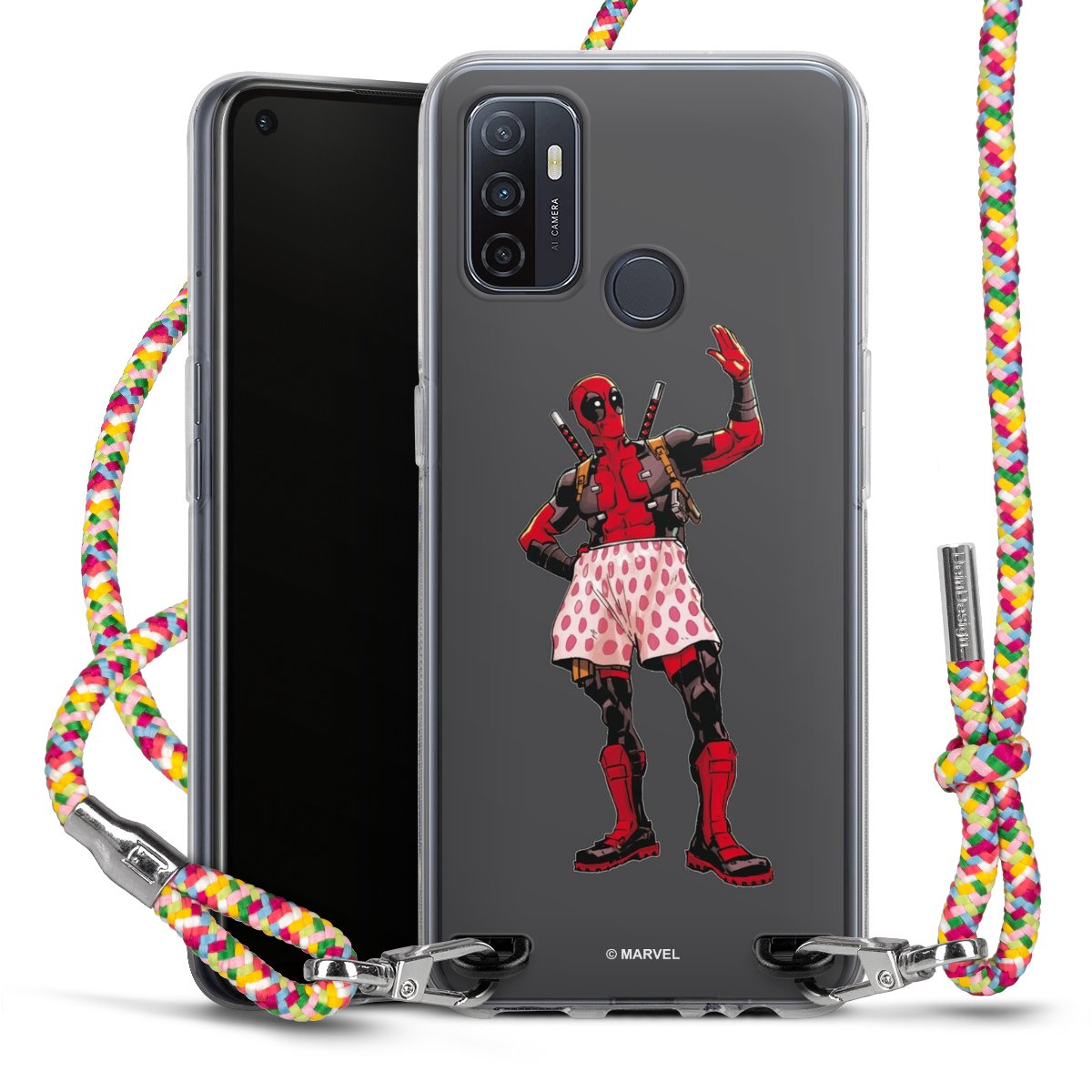 The flexible case is made from a highquality TPU material (thermoplastic Polyurethan). Thanks to its longlasting and break resistant characterisitcs, the case is flexible yet consistent in form and has a great grip and feel. The textile strap made from Polyester gives a chic yet casual accent allowing you to carry your phone like a bag or necklace - a practical gadget perfect for your next adventure. The textile strap is about 1.70 meters long and the length can easily be adjusted through the knots. Our Carry Case is available in Colourful, Mint-Camouflage, Very-Berry, Sahara-Sand and Sparkling-Neon. The ends of the textile strap are covered with metallic end caps to protect them against fraying.