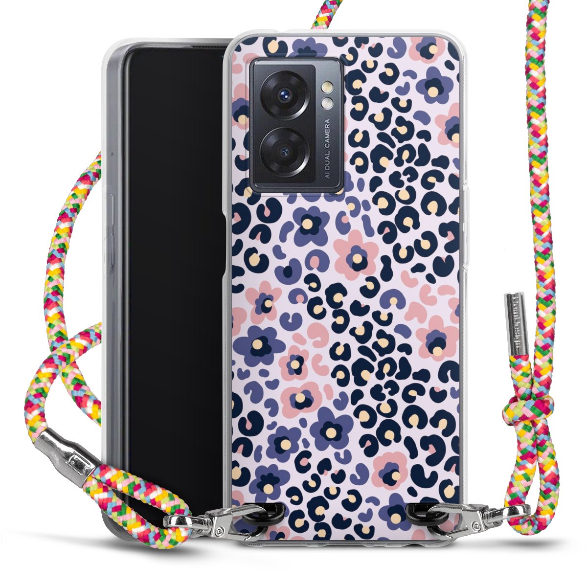 The flexible case is made from a highquality TPU material (thermoplastic Polyurethan). Thanks to its longlasting and break resistant characterisitcs, the case is flexible yet consistent in form and has a great grip and feel. The textile strap made from Polyester gives a chic yet casual accent allowing you to carry your phone like a bag or necklace - a practical gadget perfect for your next adventure. The textile strap is about 1.70 meters long and the length can easily be adjusted through the knots. Our Carry Case is available in Colourful, Mint-Camouflage, Very-Berry, Sahara-Sand and Sparkling-Neon. The ends of the textile strap are covered with metallic end caps to protect them against fraying.