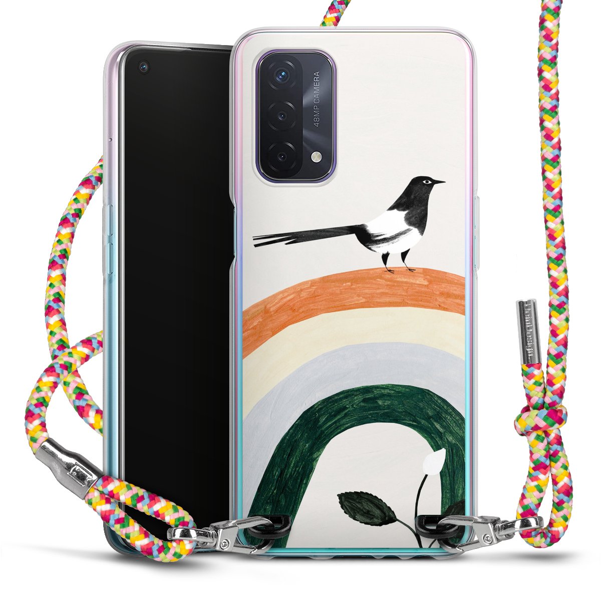 The flexible case is made from a highquality TPU material (thermoplastic Polyurethan). Thanks to its longlasting and break resistant characterisitcs, the case is flexible yet consistent in form and has a great grip and feel. The textile strap made from Polyester gives a chic yet casual accent allowing you to carry your phone like a bag or necklace - a practical gadget perfect for your next adventure. The textile strap is about 1.70 meters long and the length can easily be adjusted through the knots. Our Carry Case is available in Colourful, Mint-Camouflage, Very-Berry, Sahara-Sand and Sparkling-Neon. The ends of the textile strap are covered with metallic end caps to protect them against fraying.