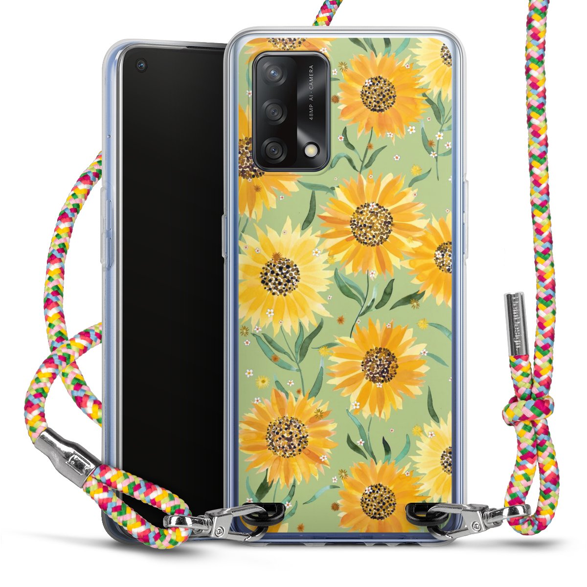 The flexible case is made from a highquality TPU material (thermoplastic Polyurethan). Thanks to its longlasting and break resistant characterisitcs, the case is flexible yet consistent in form and has a great grip and feel. The textile strap made from Polyester gives a chic yet casual accent allowing you to carry your phone like a bag or necklace - a practical gadget perfect for your next adventure. The textile strap is about 1.70 meters long and the length can easily be adjusted through the knots. Our Carry Case is available in Colourful, Mint-Camouflage, Very-Berry, Sahara-Sand and Sparkling-Neon. The ends of the textile strap are covered with metallic end caps to protect them against fraying.
