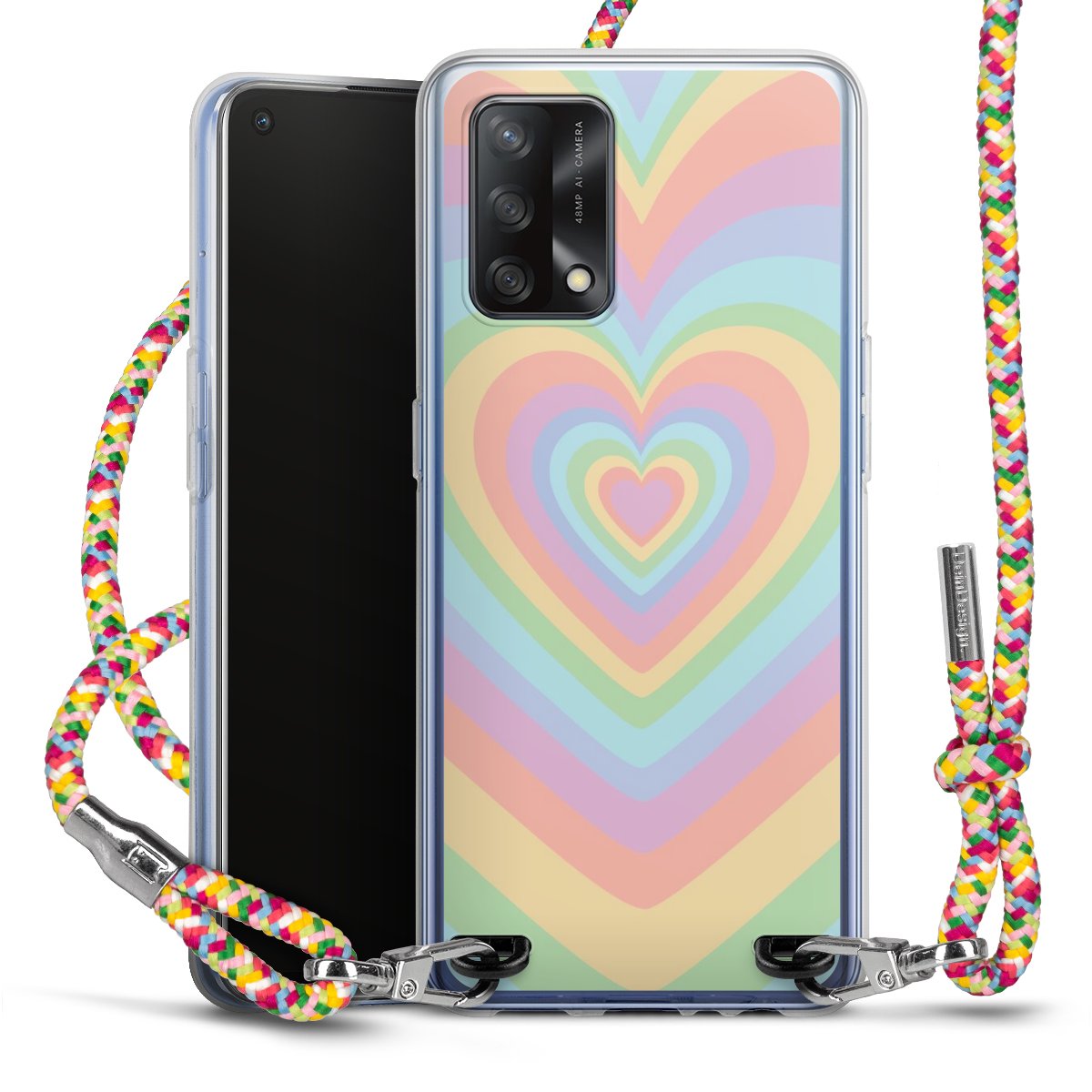 The flexible case is made from a highquality TPU material (thermoplastic Polyurethan). Thanks to its longlasting and break resistant characterisitcs, the case is flexible yet consistent in form and has a great grip and feel. The textile strap made from Polyester gives a chic yet casual accent allowing you to carry your phone like a bag or necklace - a practical gadget perfect for your next adventure. The textile strap is about 1.70 meters long and the length can easily be adjusted through the knots. Our Carry Case is available in Colourful, Mint-Camouflage, Very-Berry, Sahara-Sand and Sparkling-Neon. The ends of the textile strap are covered with metallic end caps to protect them against fraying.