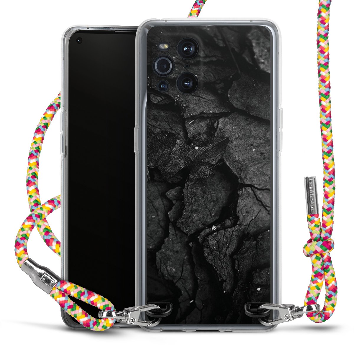 The flexible case is made from a highquality TPU material (thermoplastic Polyurethan). Thanks to its longlasting and break resistant characterisitcs, the case is flexible yet consistent in form and has a great grip and feel. The textile strap made from Polyester gives a chic yet casual accent allowing you to carry your phone like a bag or necklace - a practical gadget perfect for your next adventure. The textile strap is about 1.70 meters long and the length can easily be adjusted through the knots. Our Carry Case is available in Colourful, Mint-Camouflage, Very-Berry, Sahara-Sand and Sparkling-Neon. The ends of the textile strap are covered with metallic end caps to protect them against fraying.