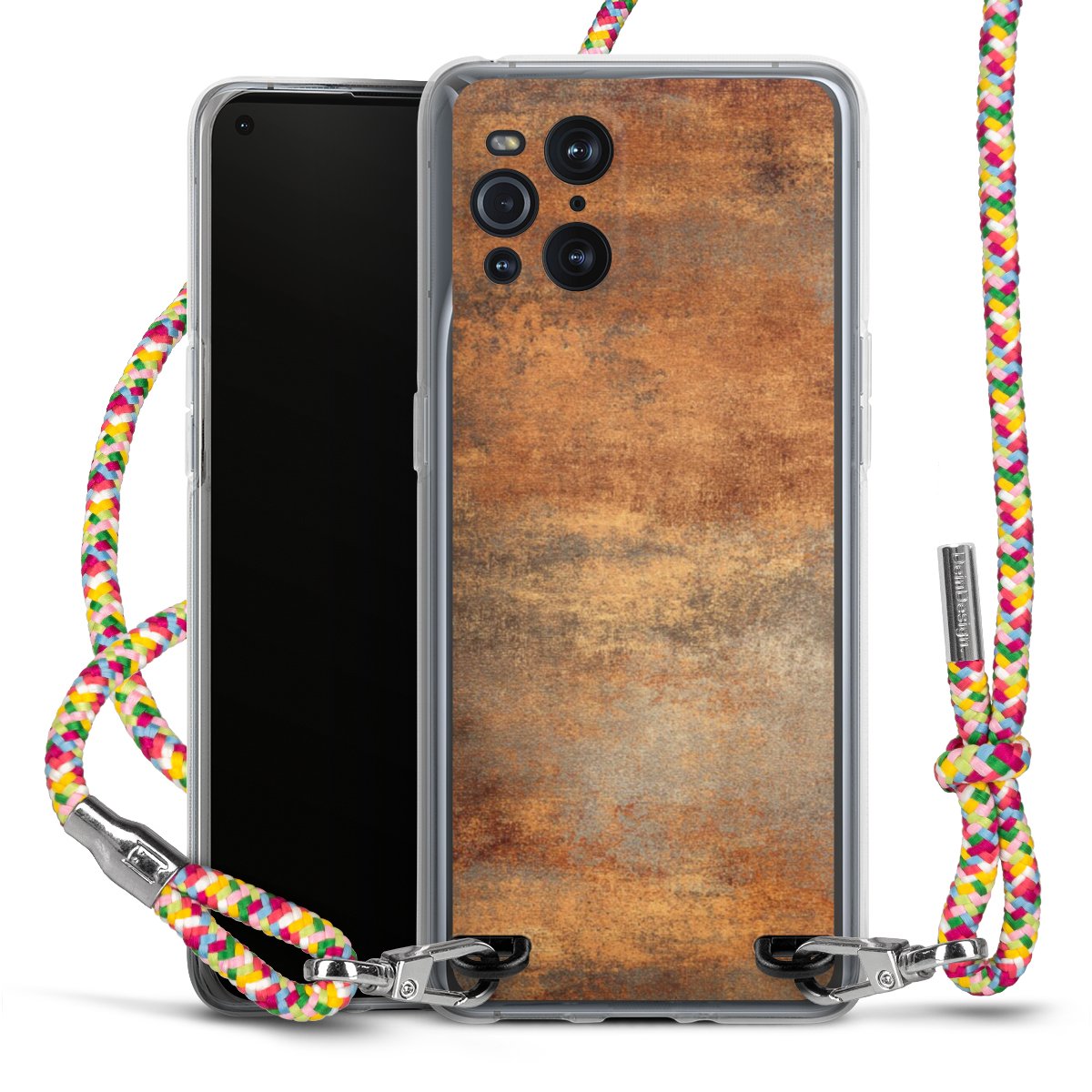 The flexible case is made from a highquality TPU material (thermoplastic Polyurethan). Thanks to its longlasting and break resistant characterisitcs, the case is flexible yet consistent in form and has a great grip and feel. The textile strap made from Polyester gives a chic yet casual accent allowing you to carry your phone like a bag or necklace - a practical gadget perfect for your next adventure. The textile strap is about 1.70 meters long and the length can easily be adjusted through the knots. Our Carry Case is available in Colourful, Mint-Camouflage, Very-Berry, Sahara-Sand and Sparkling-Neon. The ends of the textile strap are covered with metallic end caps to protect them against fraying.
