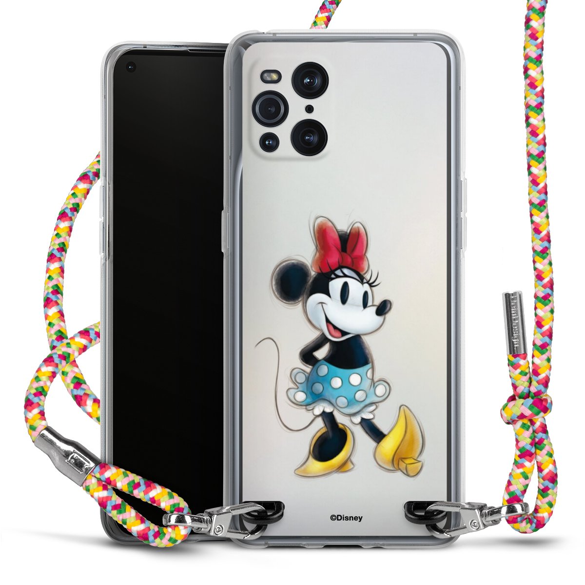 The flexible case is made from a highquality TPU material (thermoplastic Polyurethan). Thanks to its longlasting and break resistant characterisitcs, the case is flexible yet consistent in form and has a great grip and feel. The textile strap made from Polyester gives a chic yet casual accent allowing you to carry your phone like a bag or necklace - a practical gadget perfect for your next adventure. The textile strap is about 1.70 meters long and the length can easily be adjusted through the knots. Our Carry Case is available in Colourful, Mint-Camouflage, Very-Berry, Sahara-Sand and Sparkling-Neon. The ends of the textile strap are covered with metallic end caps to protect them against fraying.