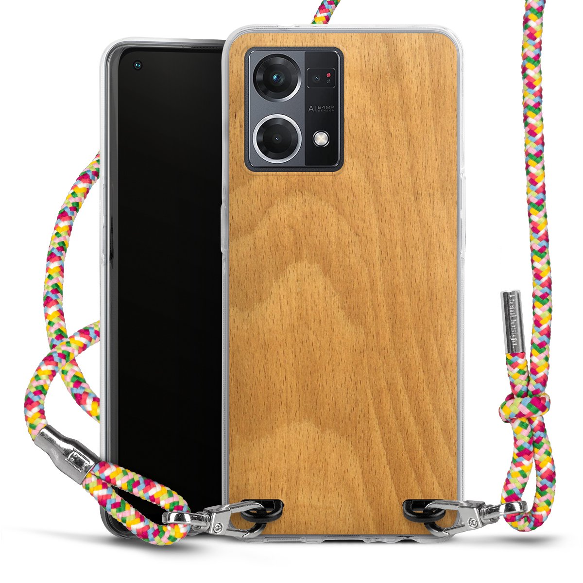 The flexible case is made from a highquality TPU material (thermoplastic Polyurethan). Thanks to its longlasting and break resistant characterisitcs, the case is flexible yet consistent in form and has a great grip and feel. The textile strap made from Polyester gives a chic yet casual accent allowing you to carry your phone like a bag or necklace - a practical gadget perfect for your next adventure. The textile strap is about 1.70 meters long and the length can easily be adjusted through the knots. Our Carry Case is available in Colourful, Mint-Camouflage, Very-Berry, Sahara-Sand and Sparkling-Neon. The ends of the textile strap are covered with metallic end caps to protect them against fraying.