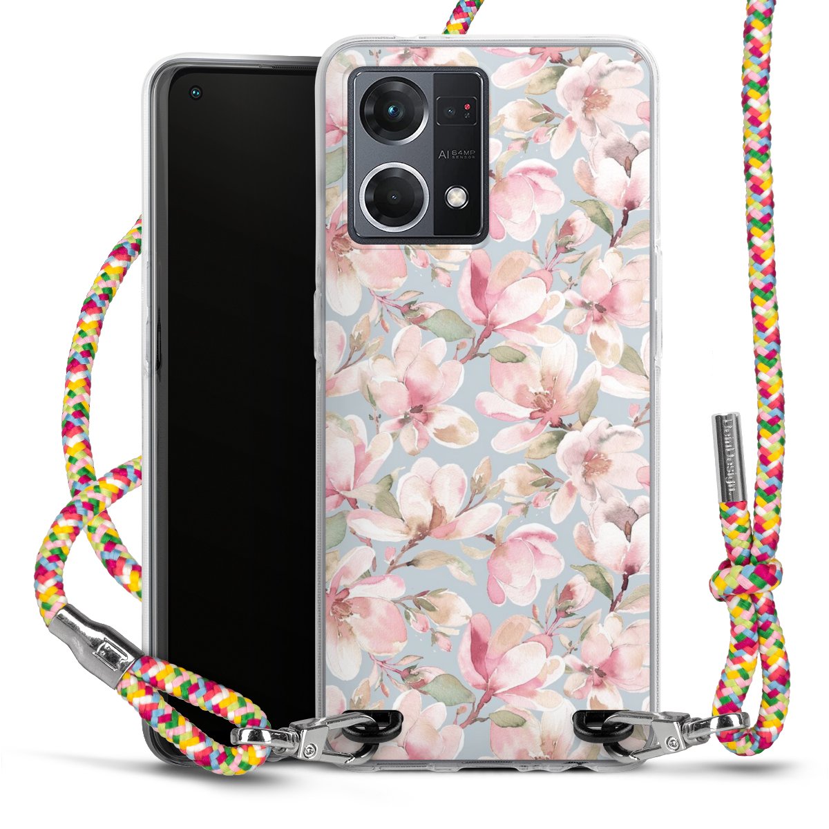 The flexible case is made from a highquality TPU material (thermoplastic Polyurethan). Thanks to its longlasting and break resistant characterisitcs, the case is flexible yet consistent in form and has a great grip and feel. The textile strap made from Polyester gives a chic yet casual accent allowing you to carry your phone like a bag or necklace - a practical gadget perfect for your next adventure. The textile strap is about 1.70 meters long and the length can easily be adjusted through the knots. Our Carry Case is available in Colourful, Mint-Camouflage, Very-Berry, Sahara-Sand and Sparkling-Neon. The ends of the textile strap are covered with metallic end caps to protect them against fraying.