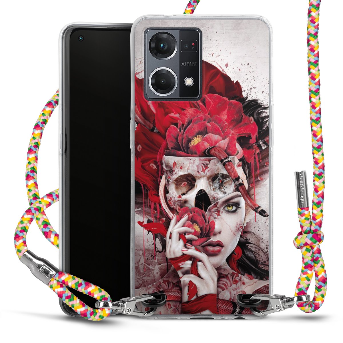 The flexible case is made from a highquality TPU material (thermoplastic Polyurethan). Thanks to its longlasting and break resistant characterisitcs, the case is flexible yet consistent in form and has a great grip and feel. The textile strap made from Polyester gives a chic yet casual accent allowing you to carry your phone like a bag or necklace - a practical gadget perfect for your next adventure. The textile strap is about 1.70 meters long and the length can easily be adjusted through the knots. Our Carry Case is available in Colourful, Mint-Camouflage, Very-Berry, Sahara-Sand and Sparkling-Neon. The ends of the textile strap are covered with metallic end caps to protect them against fraying.