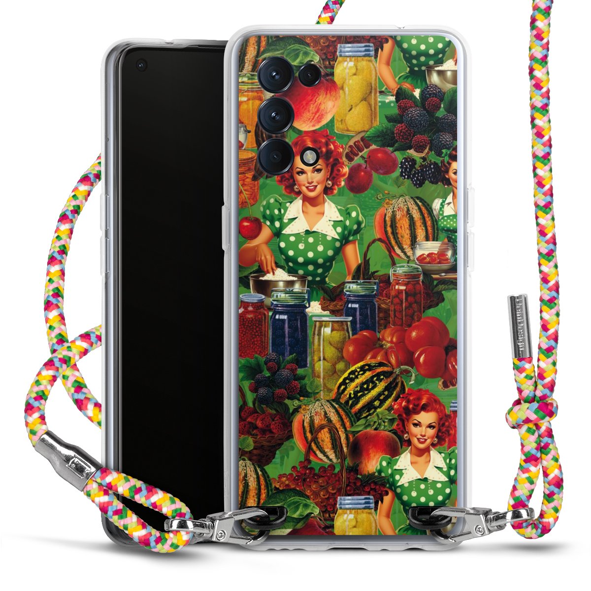 The flexible case is made from a highquality TPU material (thermoplastic Polyurethan). Thanks to its longlasting and break resistant characterisitcs, the case is flexible yet consistent in form and has a great grip and feel. The textile strap made from Polyester gives a chic yet casual accent allowing you to carry your phone like a bag or necklace - a practical gadget perfect for your next adventure. The textile strap is about 1.70 meters long and the length can easily be adjusted through the knots. Our Carry Case is available in Colourful, Mint-Camouflage, Very-Berry, Sahara-Sand and Sparkling-Neon. The ends of the textile strap are covered with metallic end caps to protect them against fraying.