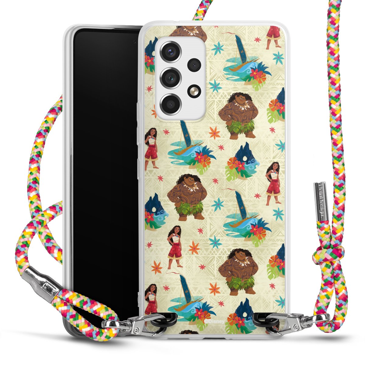 The flexible case is made from a highquality TPU material (thermoplastic Polyurethan). Thanks to its longlasting and break resistant characterisitcs, the case is flexible yet consistent in form and has a great grip and feel. The textile strap made from Polyester gives a chic yet casual accent allowing you to carry your phone like a bag or necklace - a practical gadget perfect for your next adventure. The textile strap is about 1.70 meters long and the length can easily be adjusted through the knots. Our Carry Case is available in Colourful, Mint-Camouflage, Very-Berry, Sahara-Sand and Sparkling-Neon. The ends of the textile strap are covered with metallic end caps to protect them against fraying.