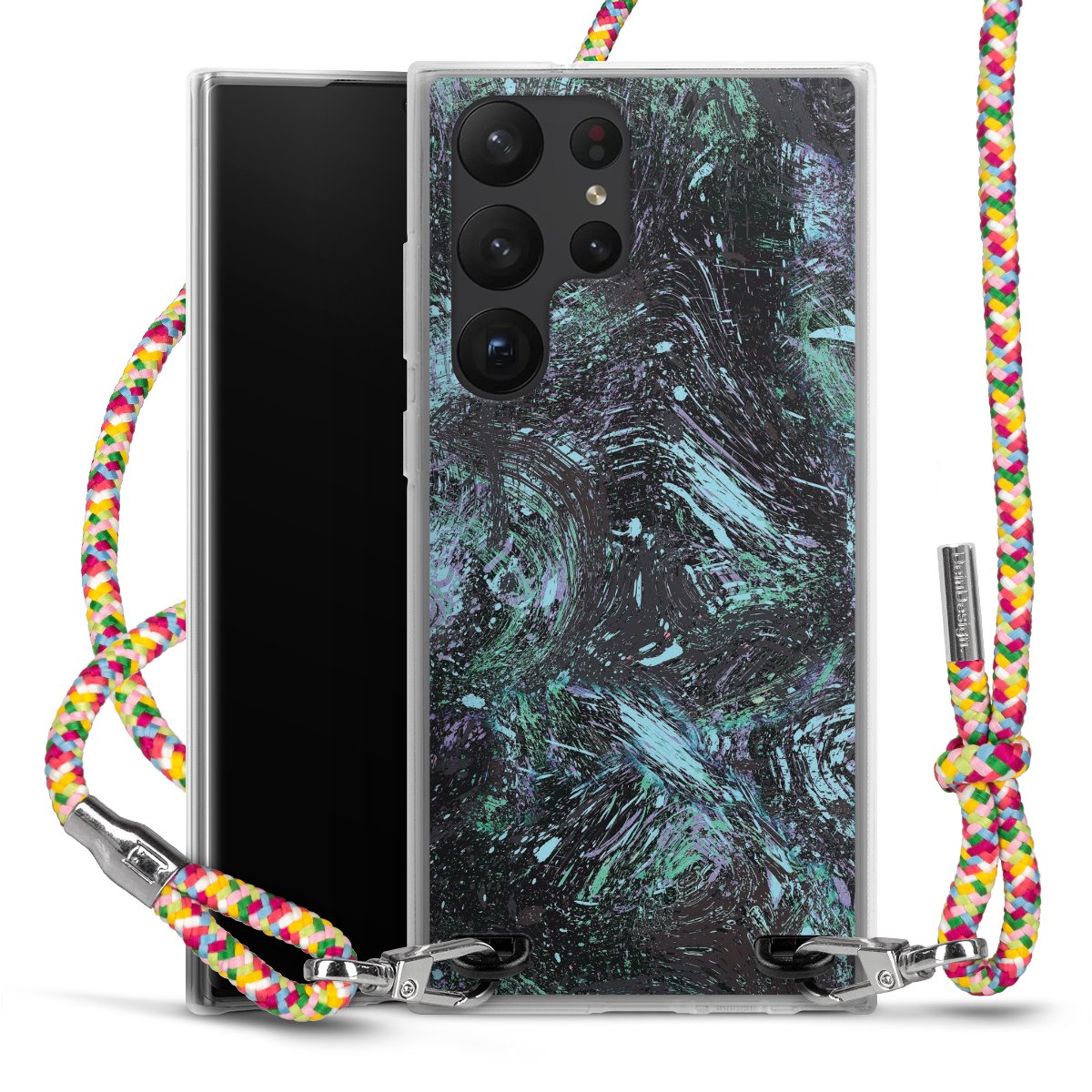 The flexible case is made from a highquality TPU material (thermoplastic Polyurethan). Thanks to its longlasting and break resistant characterisitcs, the case is flexible yet consistent in form and has a great grip and feel. The textile strap made from Polyester gives a chic yet casual accent allowing you to carry your phone like a bag or necklace - a practical gadget perfect for your next adventure. The textile strap is about 1.70 meters long and the length can easily be adjusted through the knots. Our Carry Case is available in Colourful, Mint-Camouflage, Very-Berry, Sahara-Sand and Sparkling-Neon. The ends of the textile strap are covered with metallic end caps to protect them against fraying.
