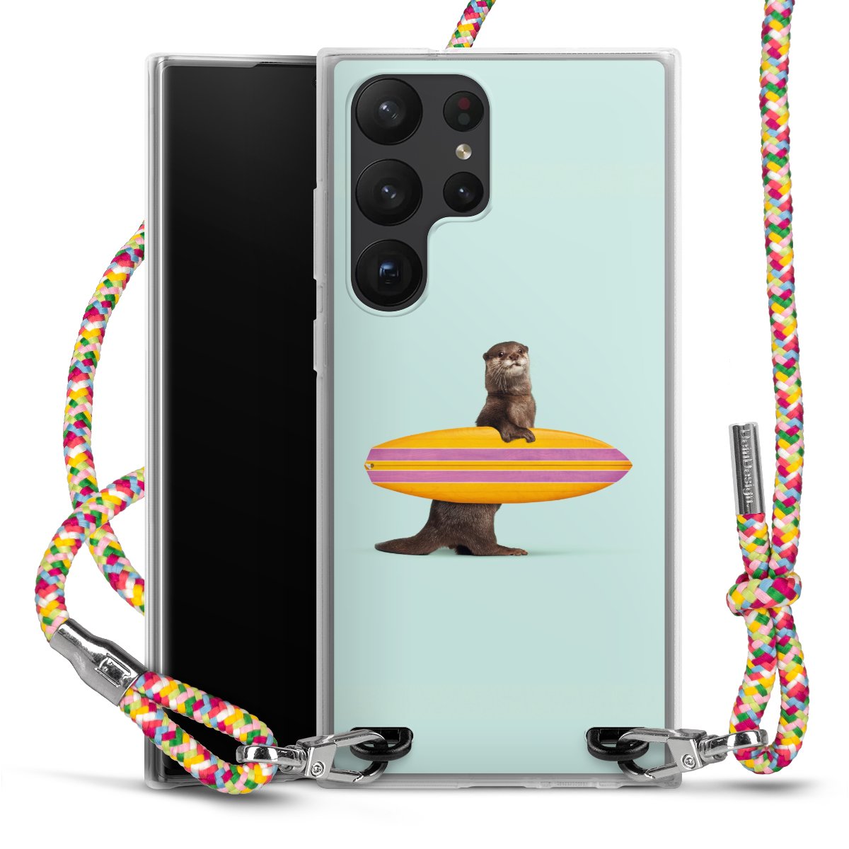 The flexible case is made from a highquality TPU material (thermoplastic Polyurethan). Thanks to its longlasting and break resistant characterisitcs, the case is flexible yet consistent in form and has a great grip and feel. The textile strap made from Polyester gives a chic yet casual accent allowing you to carry your phone like a bag or necklace - a practical gadget perfect for your next adventure. The textile strap is about 1.70 meters long and the length can easily be adjusted through the knots. Our Carry Case is available in Colourful, Mint-Camouflage, Very-Berry, Sahara-Sand and Sparkling-Neon. The ends of the textile strap are covered with metallic end caps to protect them against fraying.