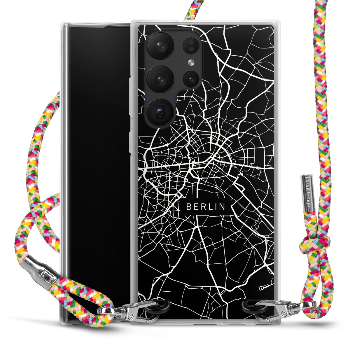 The flexible case is made from a highquality TPU material (thermoplastic Polyurethan). Thanks to its longlasting and break resistant characterisitcs, the case is flexible yet consistent in form and has a great grip and feel. The textile strap made from Polyester gives a chic yet casual accent allowing you to carry your phone like a bag or necklace - a practical gadget perfect for your next adventure. The textile strap is about 1.70 meters long and the length can easily be adjusted through the knots. Our Carry Case is available in Colourful, Mint-Camouflage, Very-Berry, Sahara-Sand and Sparkling-Neon. The ends of the textile strap are covered with metallic end caps to protect them against fraying.