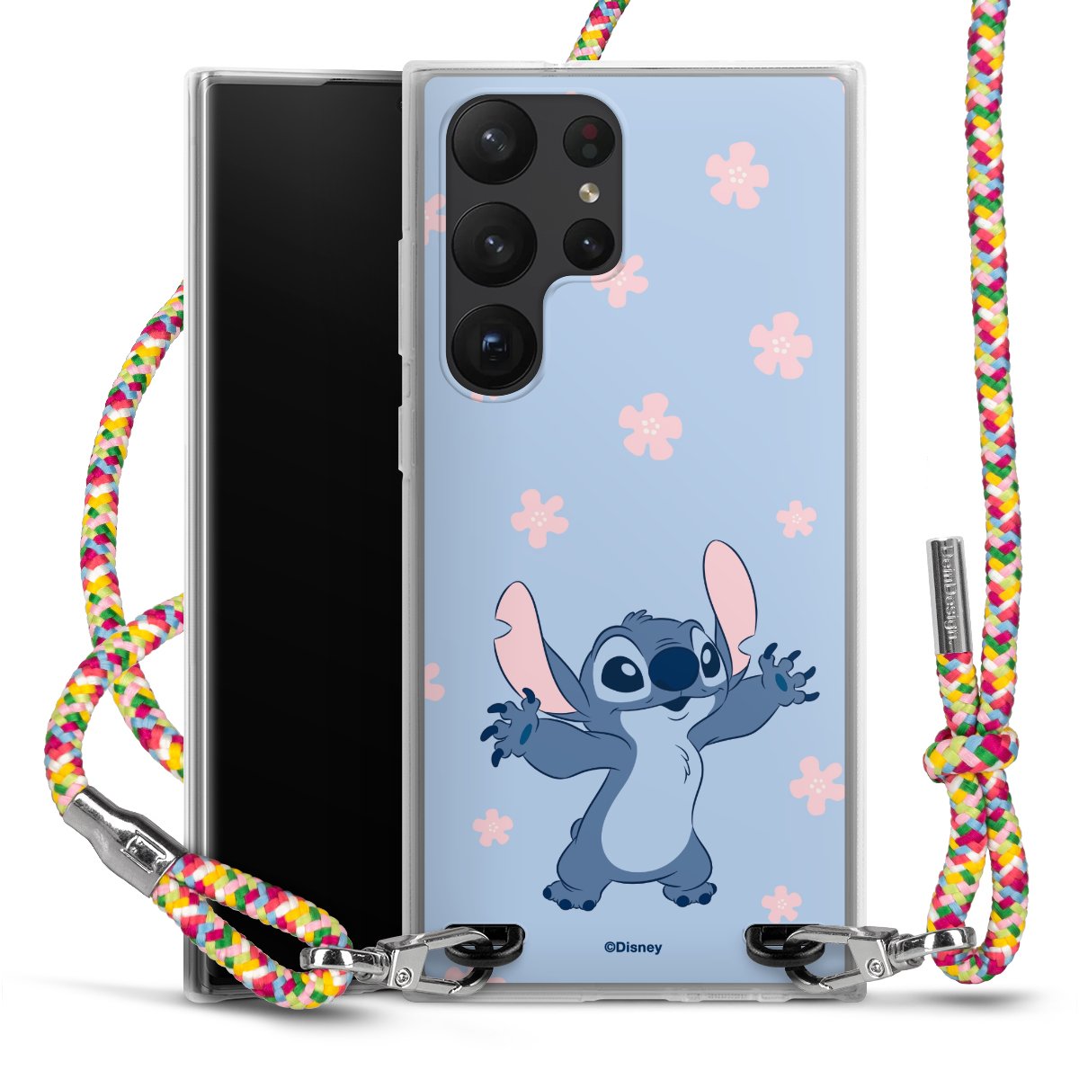 The flexible case is made from a highquality TPU material (thermoplastic Polyurethan). Thanks to its longlasting and break resistant characterisitcs, the case is flexible yet consistent in form and has a great grip and feel. The textile strap made from Polyester gives a chic yet casual accent allowing you to carry your phone like a bag or necklace - a practical gadget perfect for your next adventure. The textile strap is about 1.70 meters long and the length can easily be adjusted through the knots. Our Carry Case is available in Colourful, Mint-Camouflage, Very-Berry, Sahara-Sand and Sparkling-Neon. The ends of the textile strap are covered with metallic end caps to protect them against fraying.