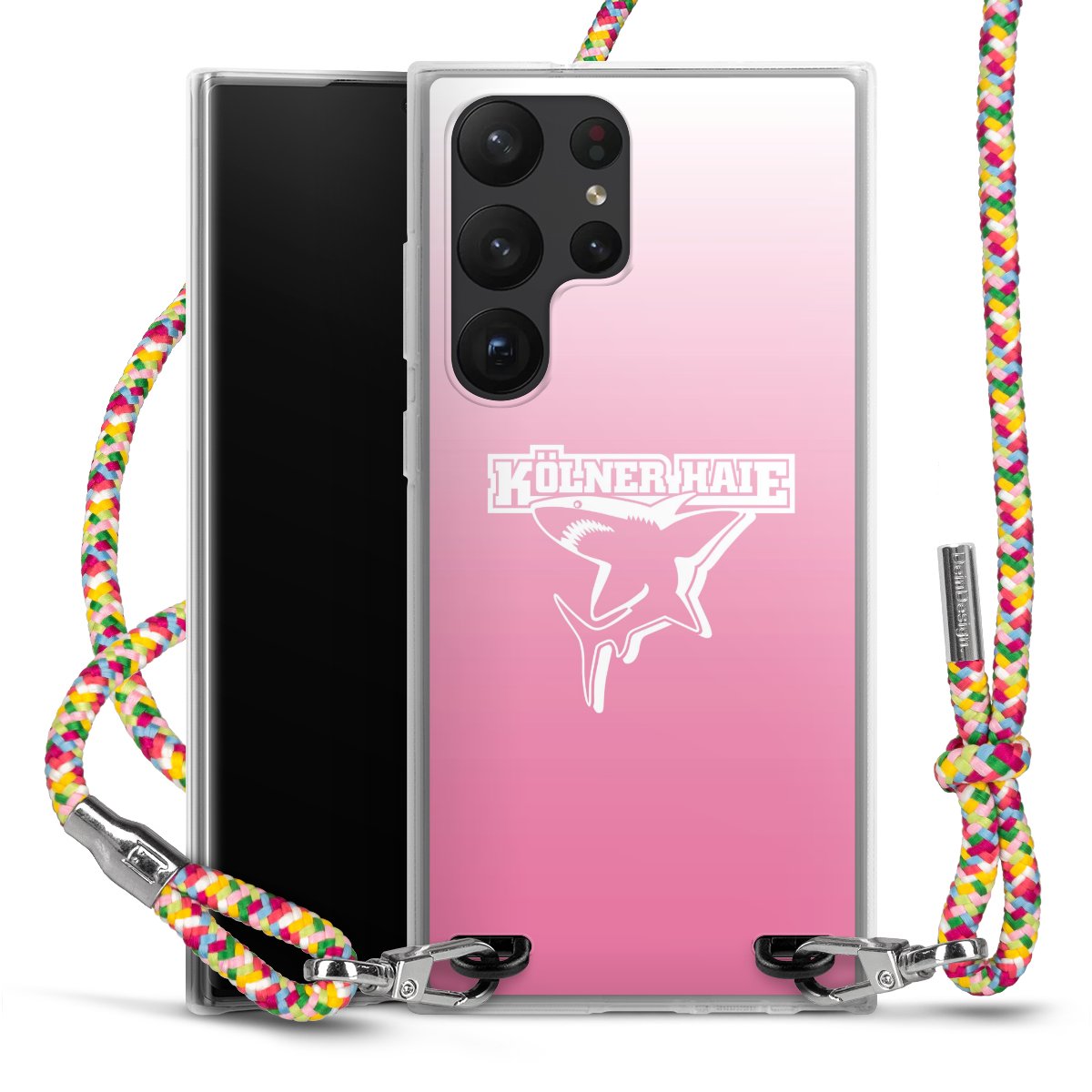 The flexible case is made from a highquality TPU material (thermoplastic Polyurethan). Thanks to its longlasting and break resistant characterisitcs, the case is flexible yet consistent in form and has a great grip and feel. The textile strap made from Polyester gives a chic yet casual accent allowing you to carry your phone like a bag or necklace - a practical gadget perfect for your next adventure. The textile strap is about 1.70 meters long and the length can easily be adjusted through the knots. Our Carry Case is available in Colourful, Mint-Camouflage, Very-Berry, Sahara-Sand and Sparkling-Neon. The ends of the textile strap are covered with metallic end caps to protect them against fraying.