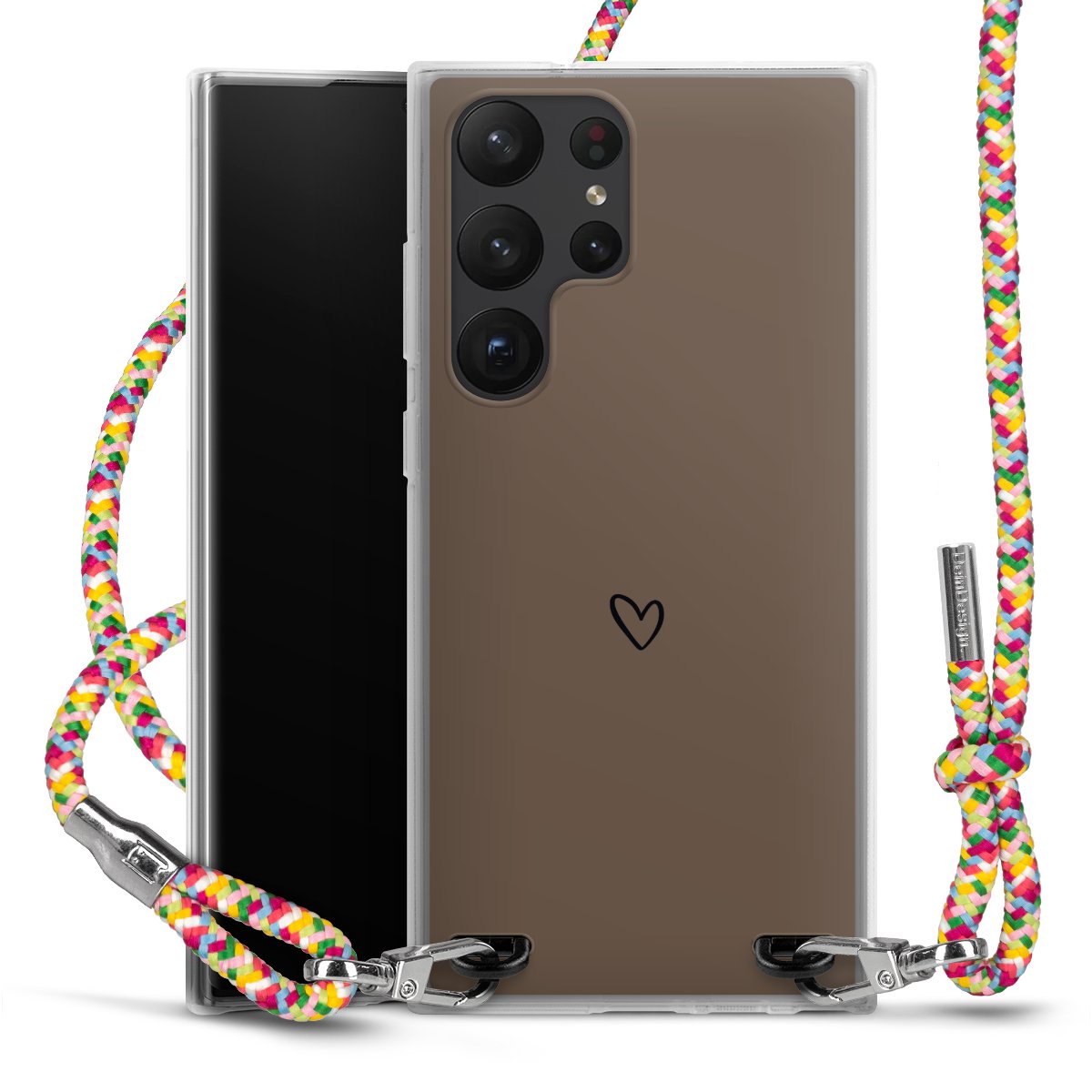 The flexible case is made from a highquality TPU material (thermoplastic Polyurethan). Thanks to its longlasting and break resistant characterisitcs, the case is flexible yet consistent in form and has a great grip and feel. The textile strap made from Polyester gives a chic yet casual accent allowing you to carry your phone like a bag or necklace - a practical gadget perfect for your next adventure. The textile strap is about 1.70 meters long and the length can easily be adjusted through the knots. Our Carry Case is available in Colourful, Mint-Camouflage, Very-Berry, Sahara-Sand and Sparkling-Neon. The ends of the textile strap are covered with metallic end caps to protect them against fraying.