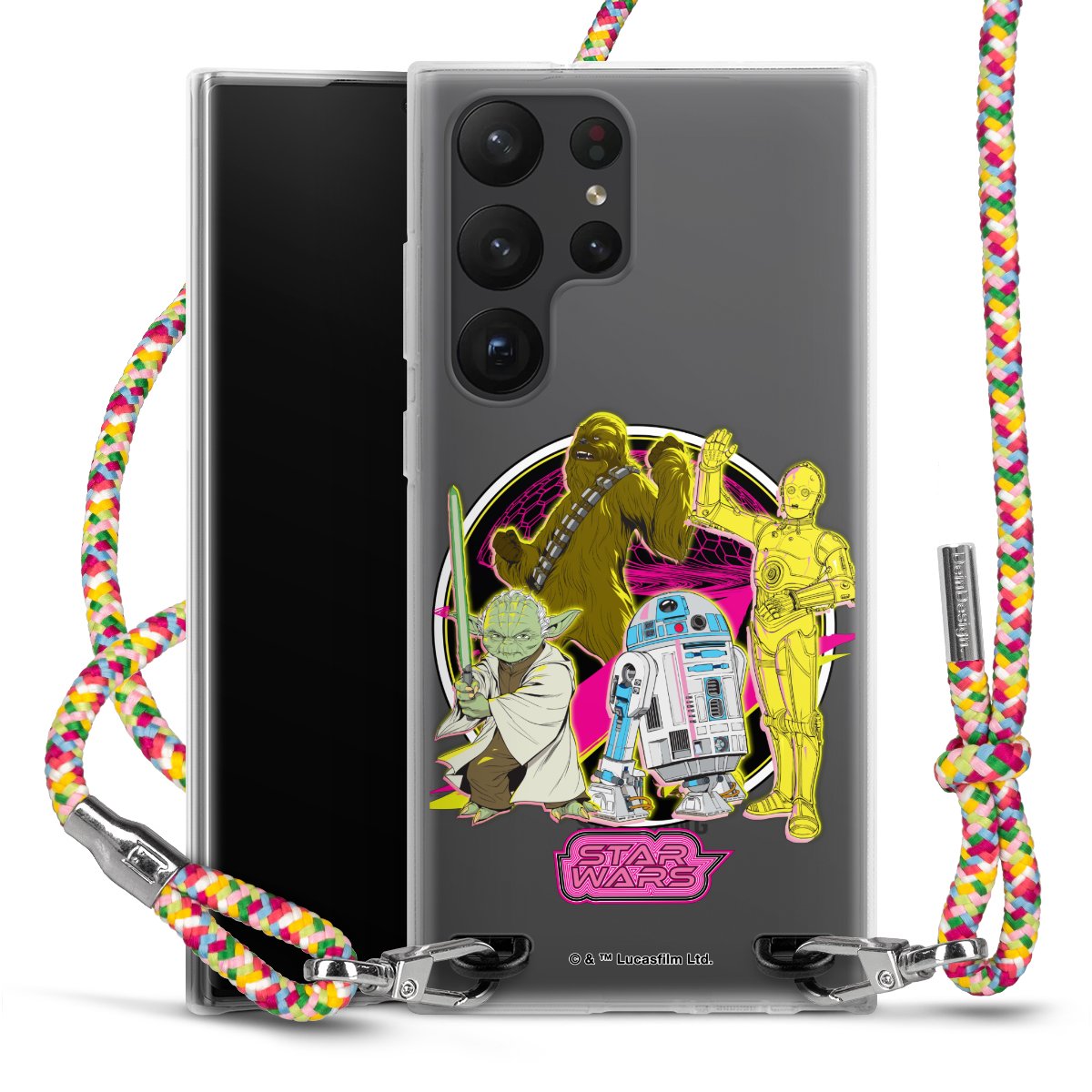 The flexible case is made from a highquality TPU material (thermoplastic Polyurethan). Thanks to its longlasting and break resistant characterisitcs, the case is flexible yet consistent in form and has a great grip and feel. The textile strap made from Polyester gives a chic yet casual accent allowing you to carry your phone like a bag or necklace - a practical gadget perfect for your next adventure. The textile strap is about 1.70 meters long and the length can easily be adjusted through the knots. Our Carry Case is available in Colourful, Mint-Camouflage, Very-Berry, Sahara-Sand and Sparkling-Neon. The ends of the textile strap are covered with metallic end caps to protect them against fraying.