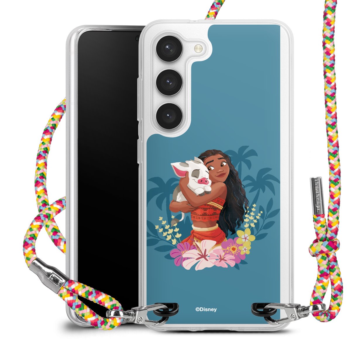 The flexible case is made from a highquality TPU material (thermoplastic Polyurethan). Thanks to its longlasting and break resistant characterisitcs, the case is flexible yet consistent in form and has a great grip and feel. The textile strap made from Polyester gives a chic yet casual accent allowing you to carry your phone like a bag or necklace - a practical gadget perfect for your next adventure. The textile strap is about 1.70 meters long and the length can easily be adjusted through the knots. Our Carry Case is available in Colourful, Mint-Camouflage, Very-Berry, Sahara-Sand and Sparkling-Neon. The ends of the textile strap are covered with metallic end caps to protect them against fraying.