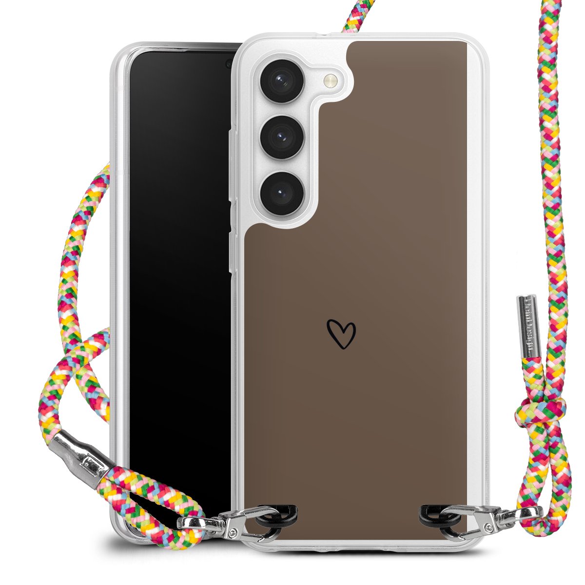 The flexible case is made from a highquality TPU material (thermoplastic Polyurethan). Thanks to its longlasting and break resistant characterisitcs, the case is flexible yet consistent in form and has a great grip and feel. The textile strap made from Polyester gives a chic yet casual accent allowing you to carry your phone like a bag or necklace - a practical gadget perfect for your next adventure. The textile strap is about 1.70 meters long and the length can easily be adjusted through the knots. Our Carry Case is available in Colourful, Mint-Camouflage, Very-Berry, Sahara-Sand and Sparkling-Neon. The ends of the textile strap are covered with metallic end caps to protect them against fraying.