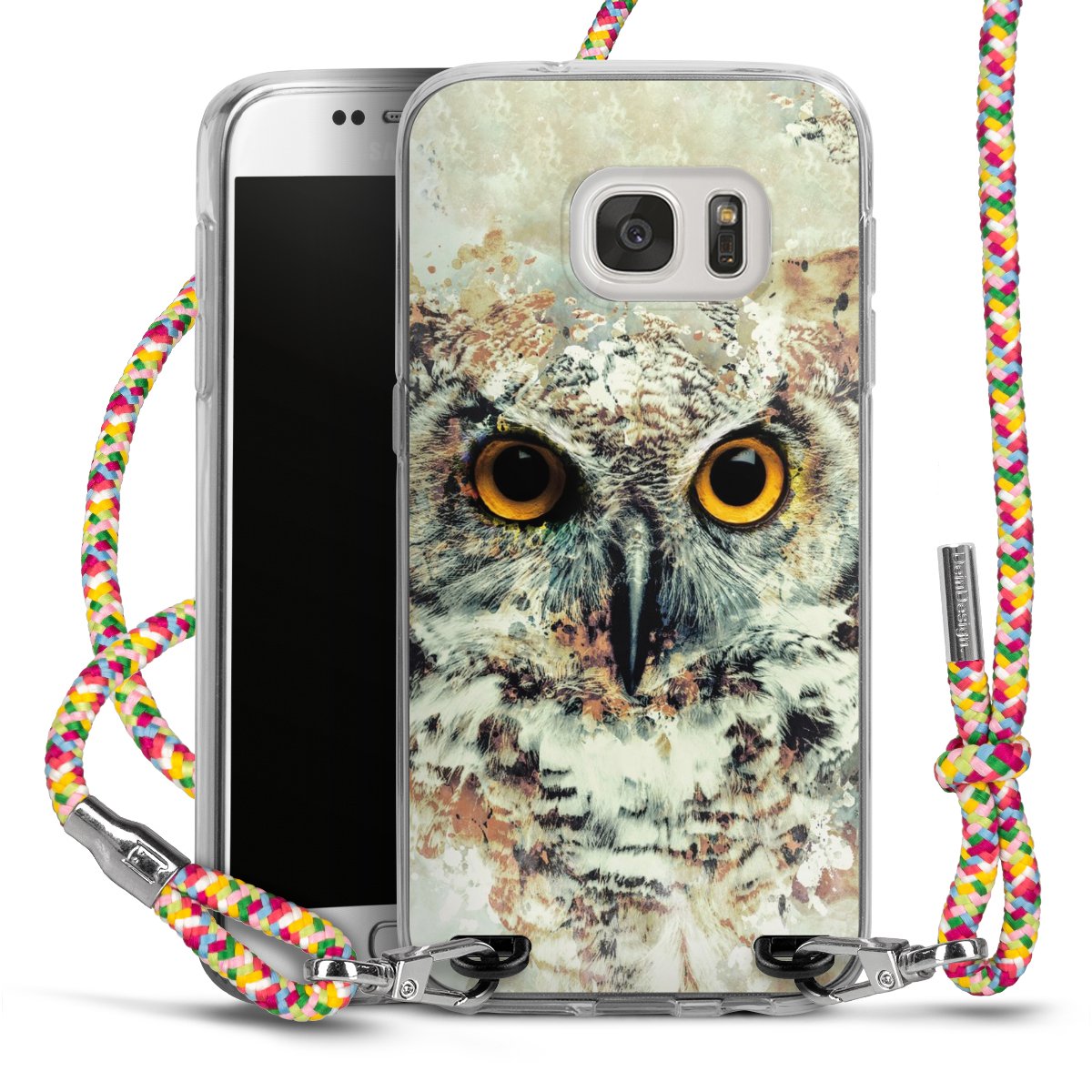 The flexible case is made from a highquality TPU material (thermoplastic Polyurethan). Thanks to its longlasting and break resistant characterisitcs, the case is flexible yet consistent in form and has a great grip and feel. The textile strap made from Polyester gives a chic yet casual accent allowing you to carry your phone like a bag or necklace - a practical gadget perfect for your next adventure. The textile strap is about 1.70 meters long and the length can easily be adjusted through the knots. Our Carry Case is available in Colourful, Mint-Camouflage, Very-Berry, Sahara-Sand and Sparkling-Neon. The ends of the textile strap are covered with metallic end caps to protect them against fraying.