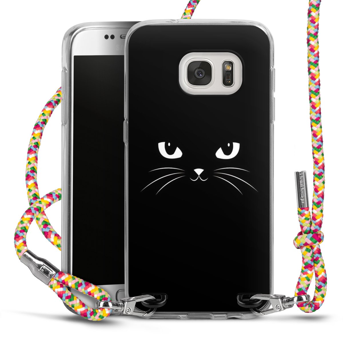 The flexible case is made from a highquality TPU material (thermoplastic Polyurethan). Thanks to its longlasting and break resistant characterisitcs, the case is flexible yet consistent in form and has a great grip and feel. The textile strap made from Polyester gives a chic yet casual accent allowing you to carry your phone like a bag or necklace - a practical gadget perfect for your next adventure. The textile strap is about 1.70 meters long and the length can easily be adjusted through the knots. Our Carry Case is available in Colourful, Mint-Camouflage, Very-Berry, Sahara-Sand and Sparkling-Neon. The ends of the textile strap are covered with metallic end caps to protect them against fraying.