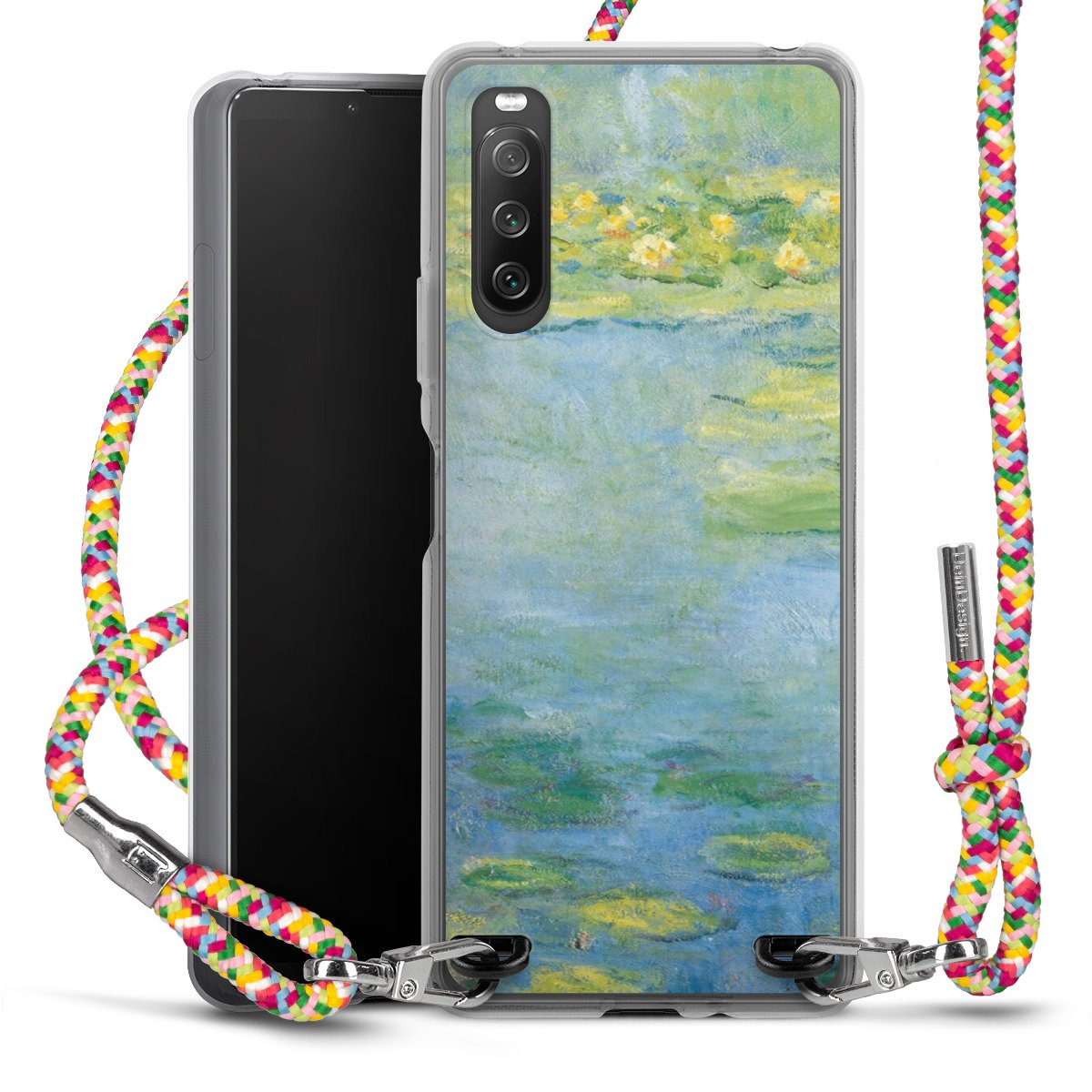 The flexible case is made from a highquality TPU material (thermoplastic Polyurethan). Thanks to its longlasting and break resistant characterisitcs, the case is flexible yet consistent in form and has a great grip and feel. The textile strap made from Polyester gives a chic yet casual accent allowing you to carry your phone like a bag or necklace - a practical gadget perfect for your next adventure. The textile strap is about 1.70 meters long and the length can easily be adjusted through the knots. Our Carry Case is available in Colourful, Mint-Camouflage, Very-Berry, Sahara-Sand and Sparkling-Neon. The ends of the textile strap are covered with metallic end caps to protect them against fraying.