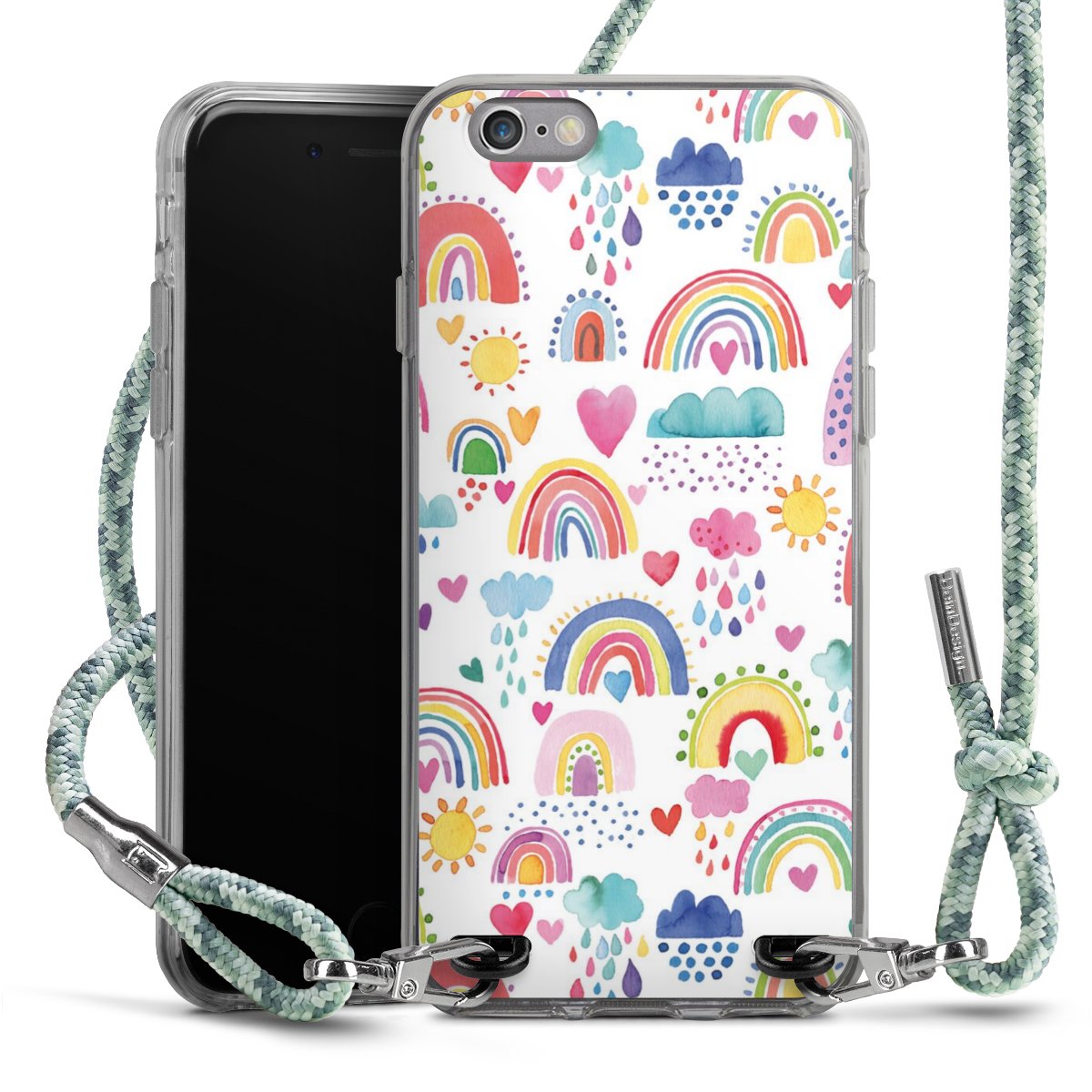 The flexible case is made from a highquality TPU material (thermoplastic Polyurethan). Thanks to its longlasting and break resistant characterisitcs, the case is flexible yet consistent in form and has a great grip and feel. The textile strap made from Polyester gives a chic yet casual accent allowing you to carry your phone like a bag or necklace - a practical gadget perfect for your next adventure. The textile strap is about 1.70 meters long and the length can easily be adjusted through the knots. Our Carry Case is available in Colourful, Mint-Camouflage, Very-Berry, Sahara-Sand and Sparkling-Neon. The ends of the textile strap are covered with metallic end caps to protect them against fraying.