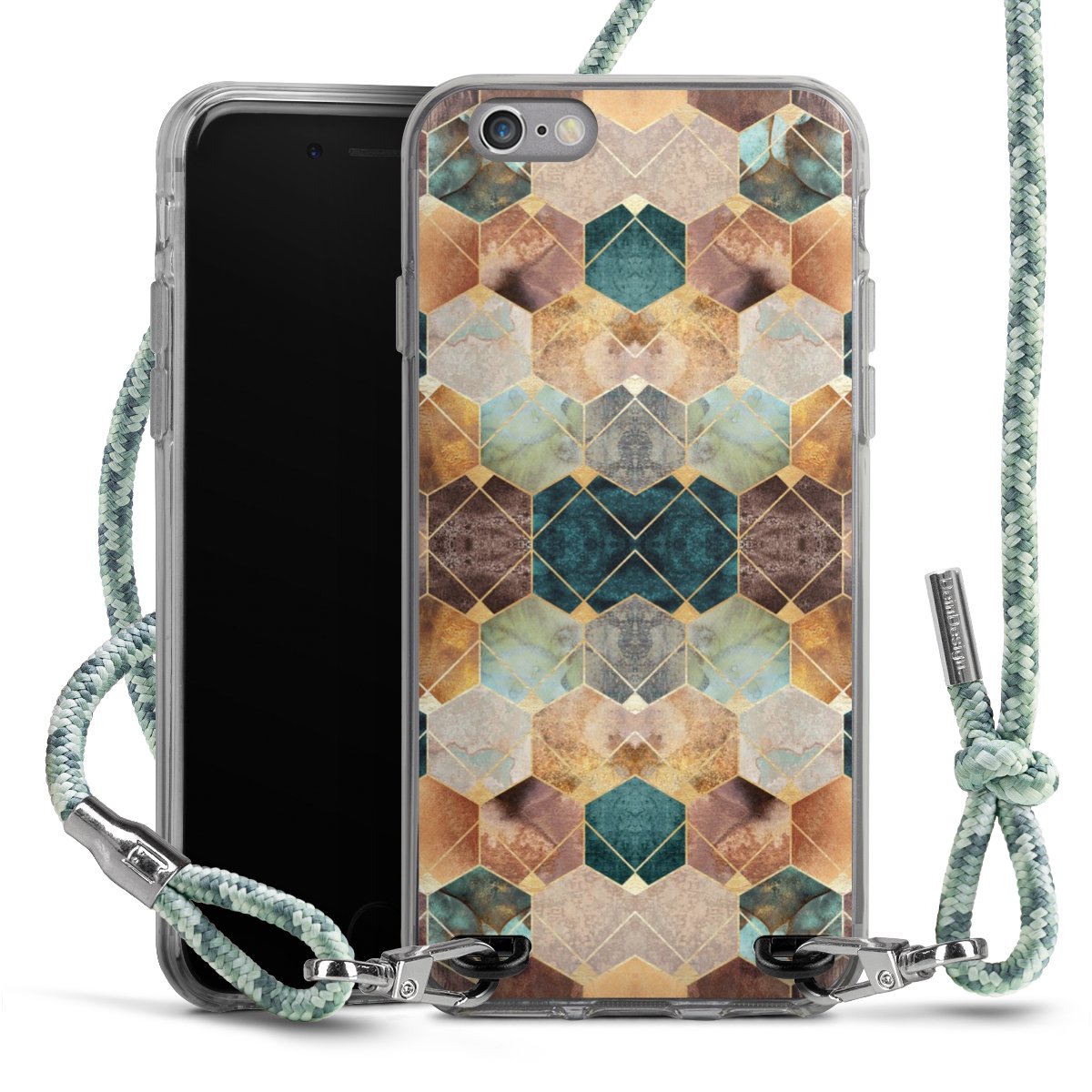 The flexible case is made from a highquality TPU material (thermoplastic Polyurethan). Thanks to its longlasting and break resistant characterisitcs, the case is flexible yet consistent in form and has a great grip and feel. The textile strap made from Polyester gives a chic yet casual accent allowing you to carry your phone like a bag or necklace - a practical gadget perfect for your next adventure. The textile strap is about 1.70 meters long and the length can easily be adjusted through the knots. Our Carry Case is available in Colourful, Mint-Camouflage, Very-Berry, Sahara-Sand and Sparkling-Neon. The ends of the textile strap are covered with metallic end caps to protect them against fraying.