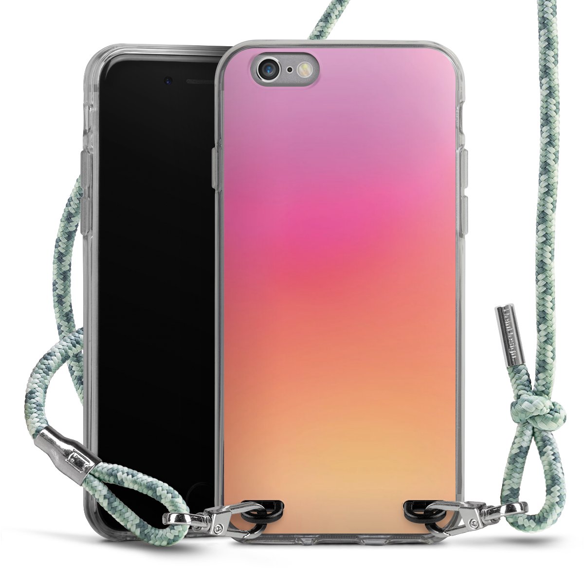 The flexible case is made from a highquality TPU material (thermoplastic Polyurethan). Thanks to its longlasting and break resistant characterisitcs, the case is flexible yet consistent in form and has a great grip and feel. The textile strap made from Polyester gives a chic yet casual accent allowing you to carry your phone like a bag or necklace - a practical gadget perfect for your next adventure. The textile strap is about 1.70 meters long and the length can easily be adjusted through the knots. Our Carry Case is available in Colourful, Mint-Camouflage, Very-Berry, Sahara-Sand and Sparkling-Neon. The ends of the textile strap are covered with metallic end caps to protect them against fraying.