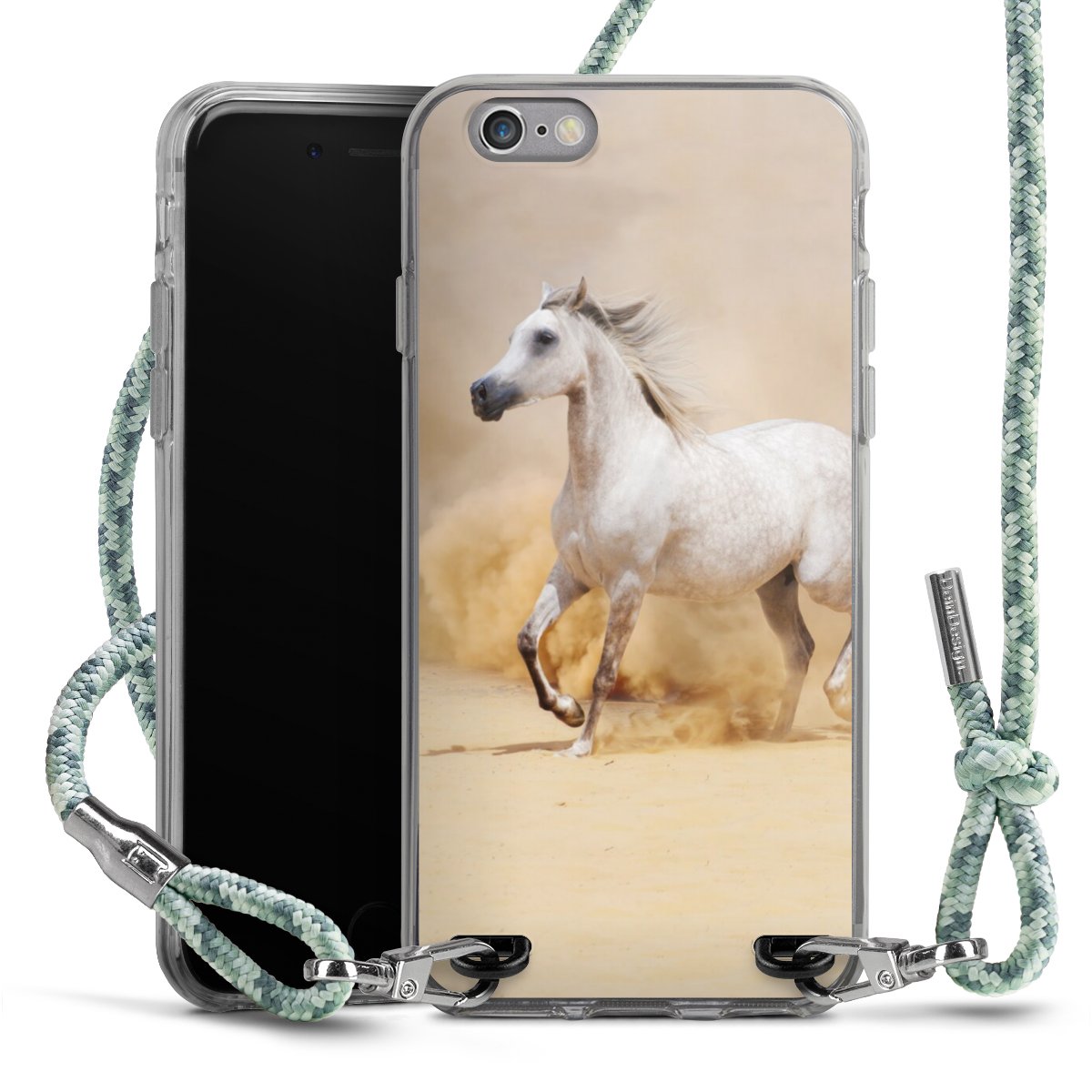 The flexible case is made from a highquality TPU material (thermoplastic Polyurethan). Thanks to its longlasting and break resistant characterisitcs, the case is flexible yet consistent in form and has a great grip and feel. The textile strap made from Polyester gives a chic yet casual accent allowing you to carry your phone like a bag or necklace - a practical gadget perfect for your next adventure. The textile strap is about 1.70 meters long and the length can easily be adjusted through the knots. Our Carry Case is available in Colourful, Mint-Camouflage, Very-Berry, Sahara-Sand and Sparkling-Neon. The ends of the textile strap are covered with metallic end caps to protect them against fraying.