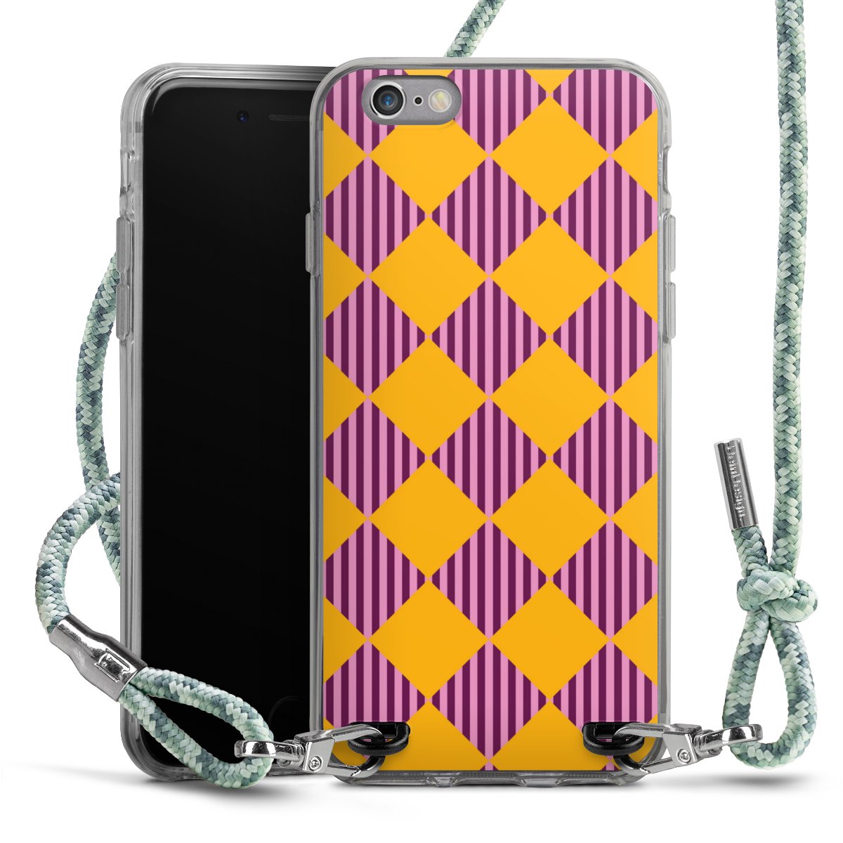 The flexible case is made from a highquality TPU material (thermoplastic Polyurethan). Thanks to its longlasting and break resistant characterisitcs, the case is flexible yet consistent in form and has a great grip and feel. The textile strap made from Polyester gives a chic yet casual accent allowing you to carry your phone like a bag or necklace - a practical gadget perfect for your next adventure. The textile strap is about 1.70 meters long and the length can easily be adjusted through the knots. Our Carry Case is available in Colourful, Mint-Camouflage, Very-Berry, Sahara-Sand and Sparkling-Neon. The ends of the textile strap are covered with metallic end caps to protect them against fraying.