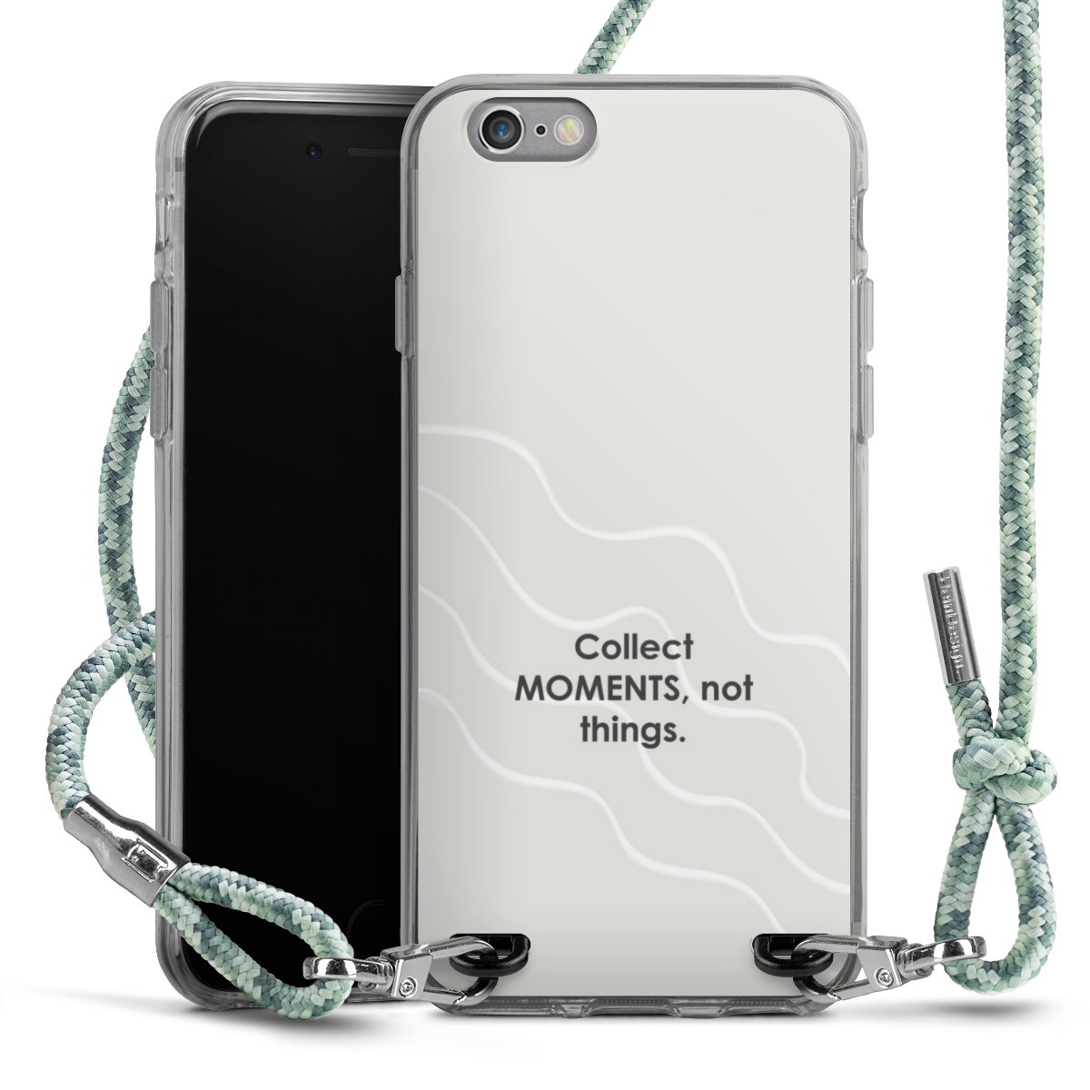 The flexible case is made from a highquality TPU material (thermoplastic Polyurethan). Thanks to its longlasting and break resistant characterisitcs, the case is flexible yet consistent in form and has a great grip and feel. The textile strap made from Polyester gives a chic yet casual accent allowing you to carry your phone like a bag or necklace - a practical gadget perfect for your next adventure. The textile strap is about 1.70 meters long and the length can easily be adjusted through the knots. Our Carry Case is available in Colourful, Mint-Camouflage, Very-Berry, Sahara-Sand and Sparkling-Neon. The ends of the textile strap are covered with metallic end caps to protect them against fraying.