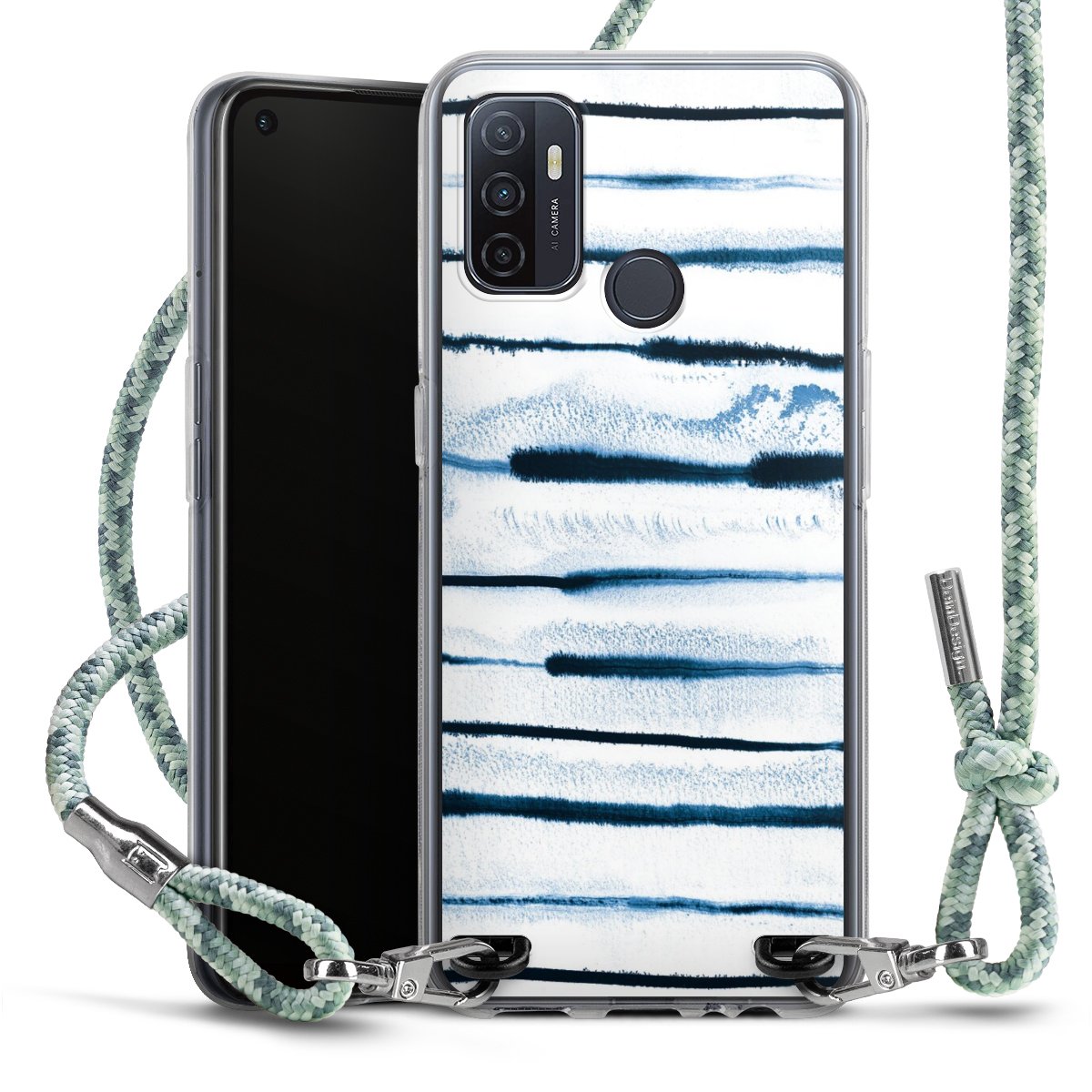 The flexible case is made from a highquality TPU material (thermoplastic Polyurethan). Thanks to its longlasting and break resistant characterisitcs, the case is flexible yet consistent in form and has a great grip and feel. The textile strap made from Polyester gives a chic yet casual accent allowing you to carry your phone like a bag or necklace - a practical gadget perfect for your next adventure. The textile strap is about 1.70 meters long and the length can easily be adjusted through the knots. Our Carry Case is available in Colourful, Mint-Camouflage, Very-Berry, Sahara-Sand and Sparkling-Neon. The ends of the textile strap are covered with metallic end caps to protect them against fraying.