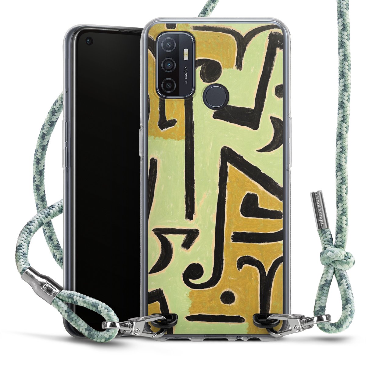 The flexible case is made from a highquality TPU material (thermoplastic Polyurethan). Thanks to its longlasting and break resistant characterisitcs, the case is flexible yet consistent in form and has a great grip and feel. The textile strap made from Polyester gives a chic yet casual accent allowing you to carry your phone like a bag or necklace - a practical gadget perfect for your next adventure. The textile strap is about 1.70 meters long and the length can easily be adjusted through the knots. Our Carry Case is available in Colourful, Mint-Camouflage, Very-Berry, Sahara-Sand and Sparkling-Neon. The ends of the textile strap are covered with metallic end caps to protect them against fraying.