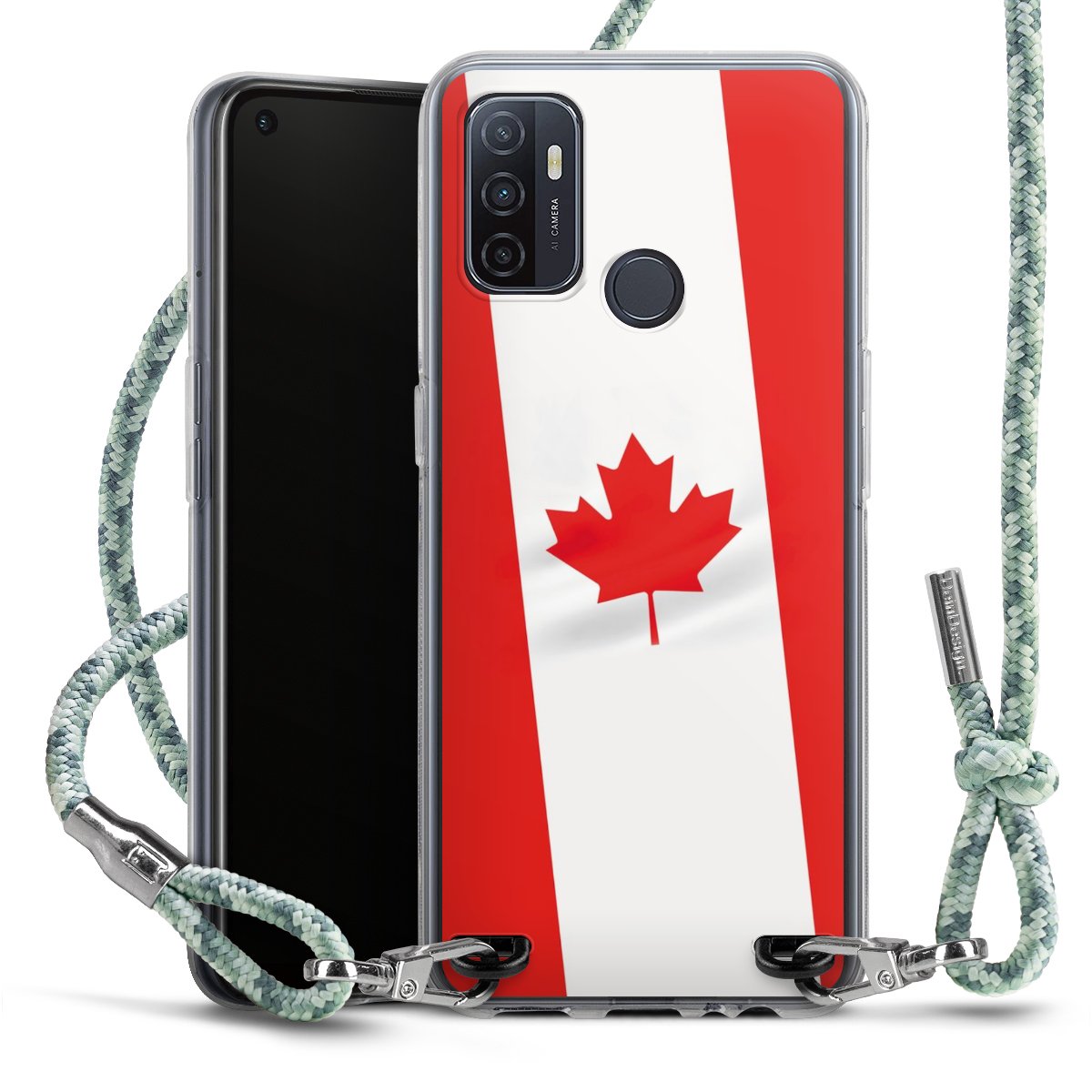 The flexible case is made from a highquality TPU material (thermoplastic Polyurethan). Thanks to its longlasting and break resistant characterisitcs, the case is flexible yet consistent in form and has a great grip and feel. The textile strap made from Polyester gives a chic yet casual accent allowing you to carry your phone like a bag or necklace - a practical gadget perfect for your next adventure. The textile strap is about 1.70 meters long and the length can easily be adjusted through the knots. Our Carry Case is available in Colourful, Mint-Camouflage, Very-Berry, Sahara-Sand and Sparkling-Neon. The ends of the textile strap are covered with metallic end caps to protect them against fraying.