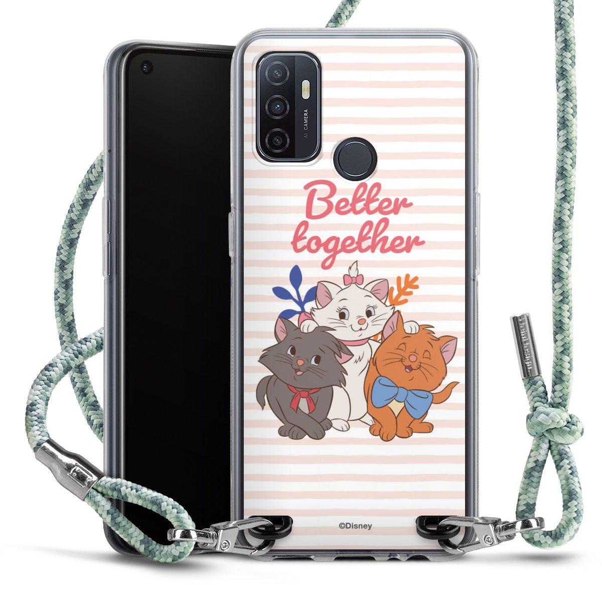 The flexible case is made from a highquality TPU material (thermoplastic Polyurethan). Thanks to its longlasting and break resistant characterisitcs, the case is flexible yet consistent in form and has a great grip and feel. The textile strap made from Polyester gives a chic yet casual accent allowing you to carry your phone like a bag or necklace - a practical gadget perfect for your next adventure. The textile strap is about 1.70 meters long and the length can easily be adjusted through the knots. Our Carry Case is available in Colourful, Mint-Camouflage, Very-Berry, Sahara-Sand and Sparkling-Neon. The ends of the textile strap are covered with metallic end caps to protect them against fraying.
