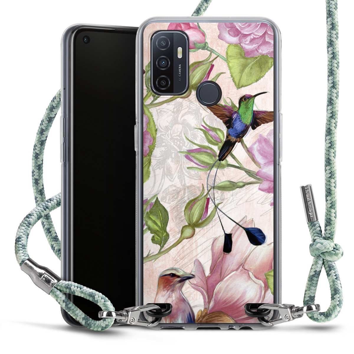 The flexible case is made from a highquality TPU material (thermoplastic Polyurethan). Thanks to its longlasting and break resistant characterisitcs, the case is flexible yet consistent in form and has a great grip and feel. The textile strap made from Polyester gives a chic yet casual accent allowing you to carry your phone like a bag or necklace - a practical gadget perfect for your next adventure. The textile strap is about 1.70 meters long and the length can easily be adjusted through the knots. Our Carry Case is available in Colourful, Mint-Camouflage, Very-Berry, Sahara-Sand and Sparkling-Neon. The ends of the textile strap are covered with metallic end caps to protect them against fraying.