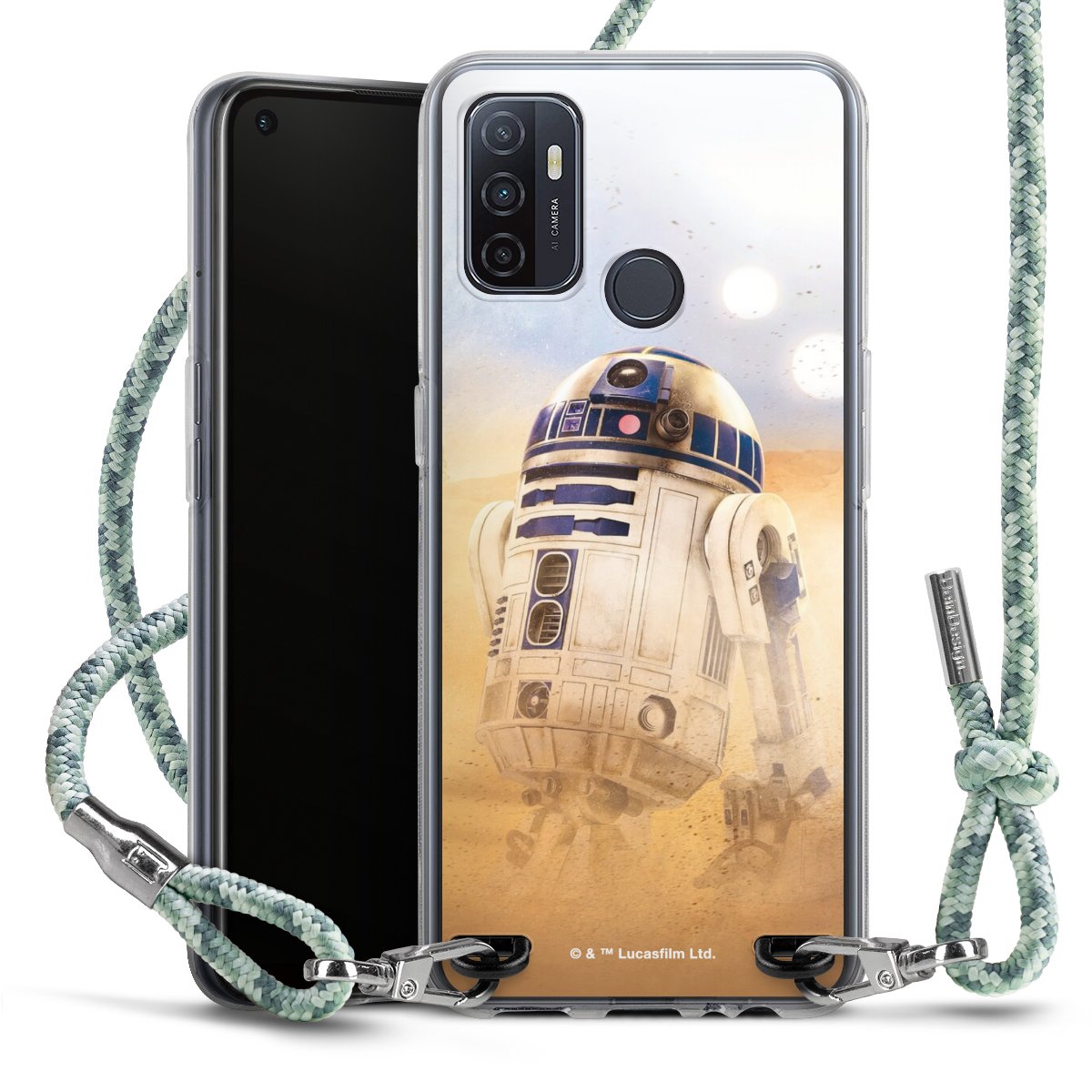 The flexible case is made from a highquality TPU material (thermoplastic Polyurethan). Thanks to its longlasting and break resistant characterisitcs, the case is flexible yet consistent in form and has a great grip and feel. The textile strap made from Polyester gives a chic yet casual accent allowing you to carry your phone like a bag or necklace - a practical gadget perfect for your next adventure. The textile strap is about 1.70 meters long and the length can easily be adjusted through the knots. Our Carry Case is available in Colourful, Mint-Camouflage, Very-Berry, Sahara-Sand and Sparkling-Neon. The ends of the textile strap are covered with metallic end caps to protect them against fraying.