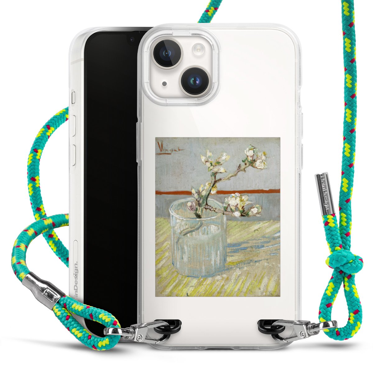 The flexible case is made from a highquality TPU material (thermoplastic Polyurethan). Thanks to its longlasting and break resistant characterisitcs, the case is flexible yet consistent in form and has a great grip and feel. The textile strap made from Polyester gives a chic yet casual accent allowing you to carry your phone like a bag or necklace - a practical gadget perfect for your next adventure. The textile strap is about 1.70 meters long and the length can easily be adjusted through the knots. Our Carry Case is available in Colourful, Mint-Camouflage, Very-Berry, Sahara-Sand and Sparkling-Neon. The ends of the textile strap are covered with metallic end caps to protect them against fraying.
